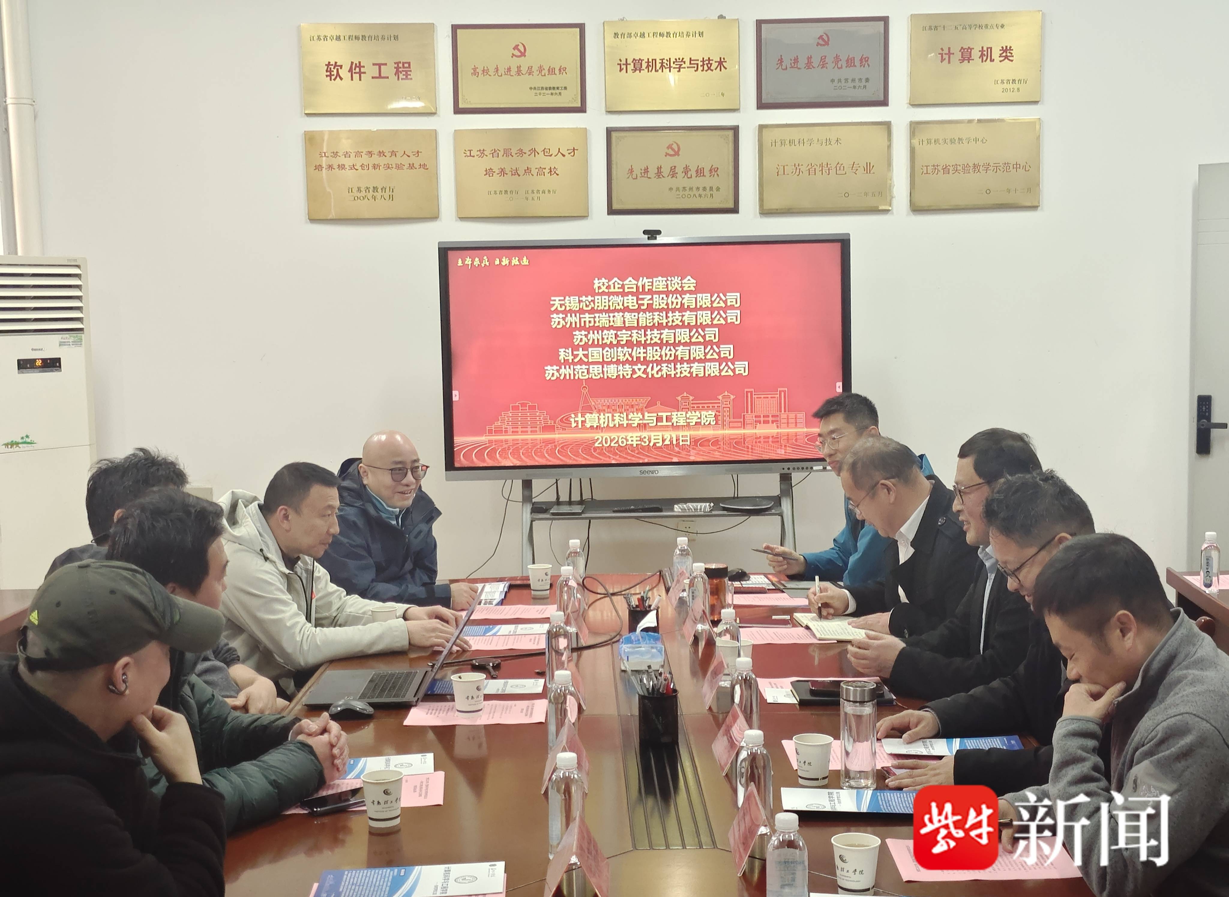 不同于普通的体育赛事,本次活动将“产教融合座谈会”与“足球友谊赛”深度结合。赛前,来自无锡芯朋微电子股份有限公司、苏州市瑞瑾智能科技有限公司、苏州筑宇科技有限公司、科大国创软件股份有限公司、苏州范思博特文化科技有限公司等五家企业的代表,与师生代表齐聚一堂,围绕人才培养、科研合作、实习就业等方面展开深入交流。会议室里共商务实举措,绿茵场上以球会友、凝聚共识,让校企合作从“纸上”落到“脚下”,也使体育精神成为产教融合的生动注脚。五家企业代表纷纷表示,作为从合肥工业大学、西安电子科技大学走出来的苏州创业者,扎根于苏州产业一线,愿主动开放实习实训基地、共建产业项目、推荐优质就业岗位,助力苏州工学院培养更多契合数字经济、智能制造领域需求的技术技能人才,搭建产教融合的“桥梁纽带”。