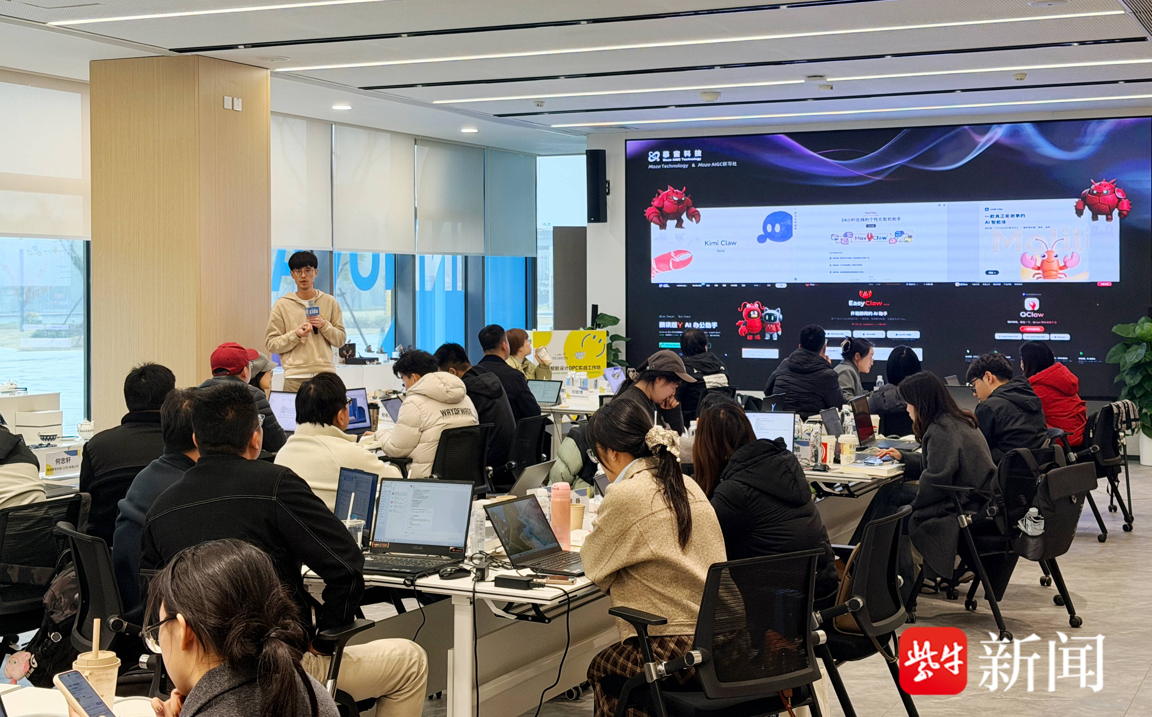 课堂上,学员们全神贯注、踊跃互动。导师们不仅带来前沿的技术干货,更结合真实的设计创业案例,现场演示如何用AI完成从创意构思到商业提案的全过程,大家纷纷在自己的电脑上跟随导师步骤,亲手“养”起属于自己的“AI小龙虾”。一位来自苏州本地的企业设计总监感叹:“以前总觉得AIGC离实际工作还有距离,今天学完才发现,原来这么多工具已经可以直接落地应用,回去就能用起来!”