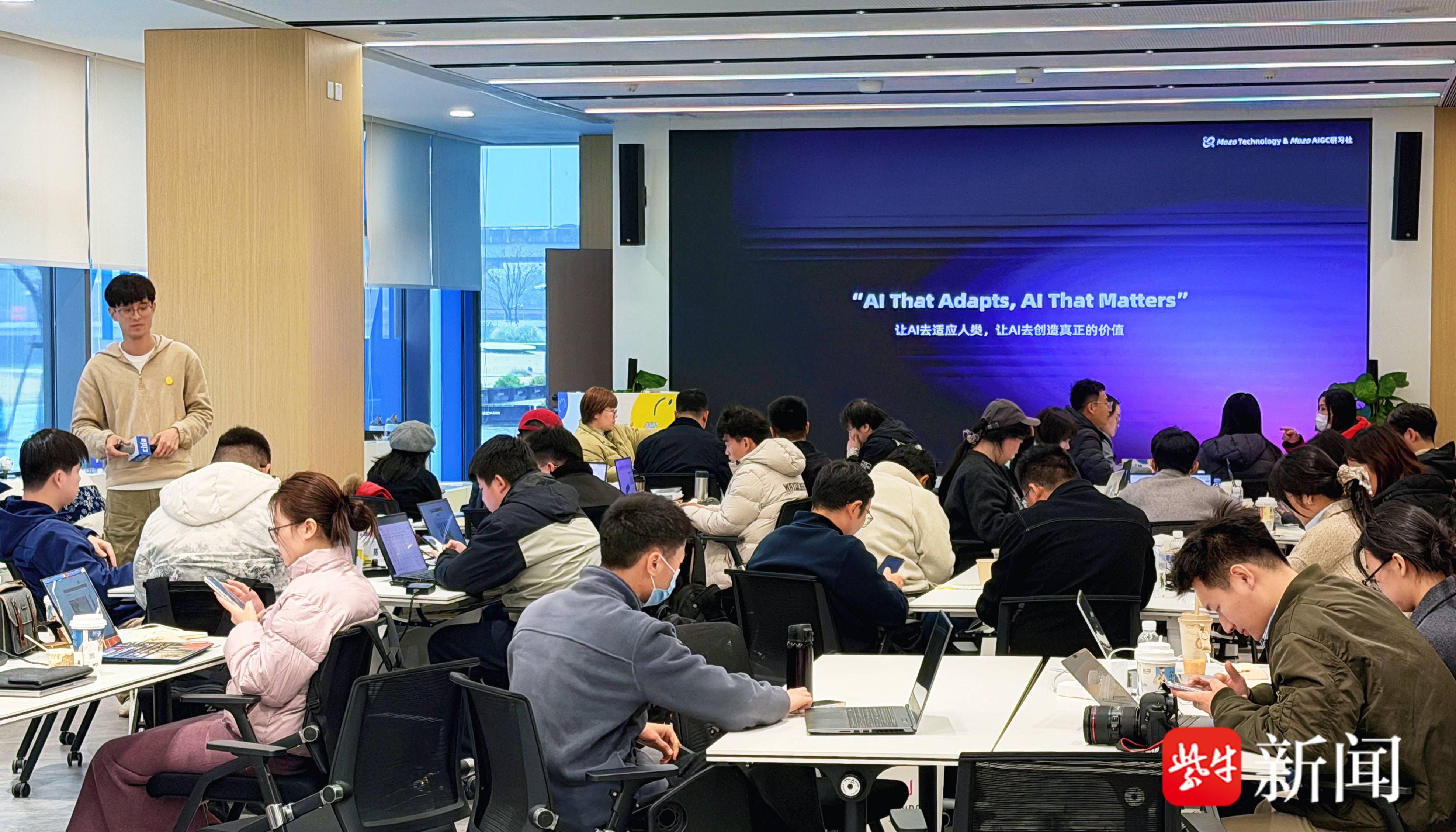 活动当天,来自全国各地的40余名优秀青年人才齐聚一堂,他们中有苏州市重点企业的设计负责人、资深设计师,也有满怀梦想的设计院校师生和正在探索“一人公司”模式的设计OPC创业者。大家带着对AIGC技术的热情与期待,在青苔设计OPC社区这个充满创新氛围的空间里,碰撞灵感、互通资源,共同搭建起一个高效、开放的设计创业交流协作平台。
