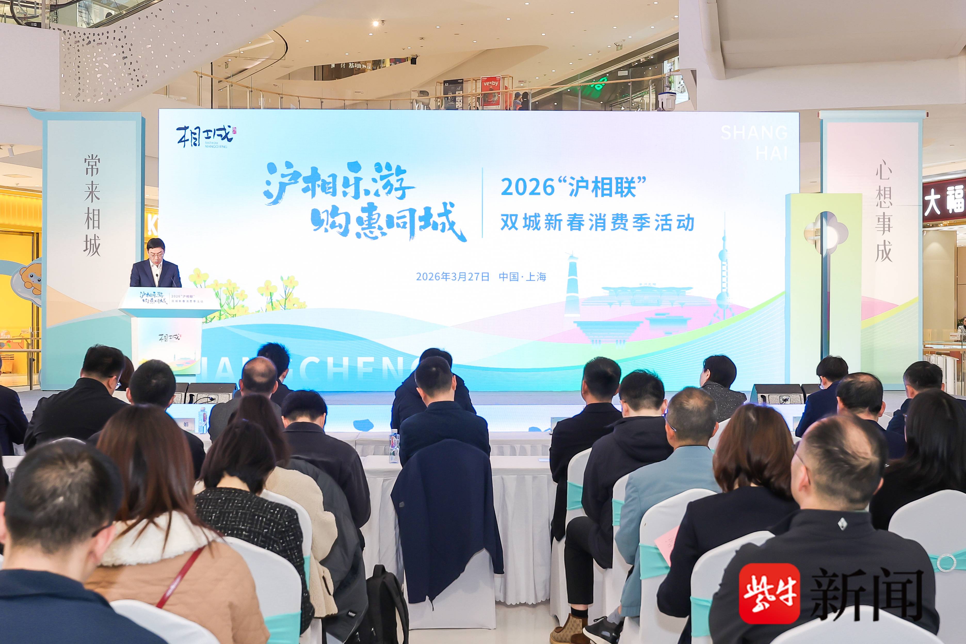 为进一步深化沪苏(州)同城化发展,激发跨区域消费新活力,3月27日,2026“沪相联”双城新春消费季活动在上海龙湖虹桥天街启动。活动以“沪相乐游·购惠同城”为主题,聚焦房产、文旅、商贸等重点领域,通过一系列主题促消费活动,着力打造多元化消费新场景,为上海市民带来最前沿的相城房产资讯、特色鲜明的文旅体验和精选优质相城好物。