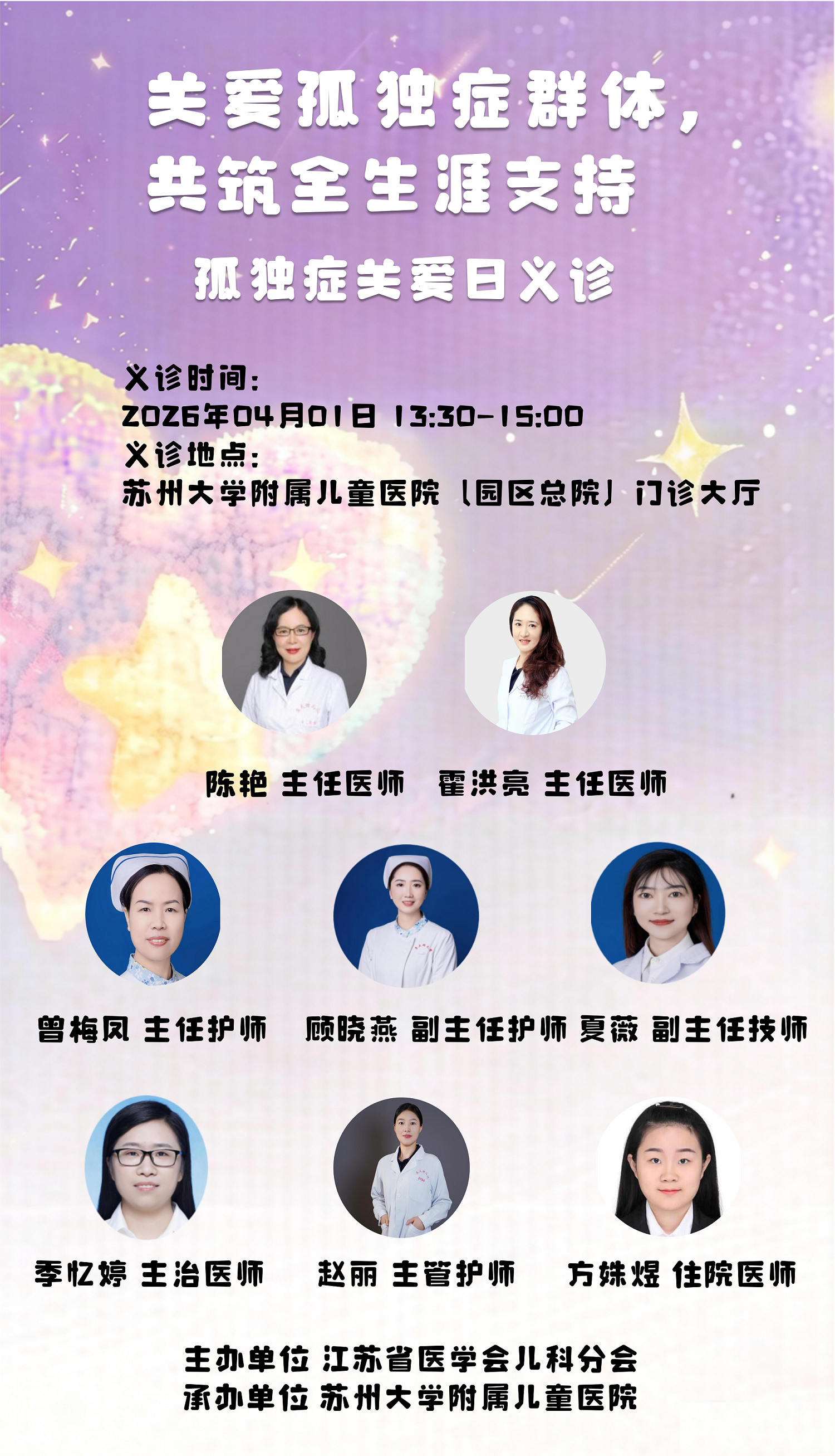 关爱孤独症群体,共筑全生涯支持!苏大附儿院4月1日将举办大型义诊活动
