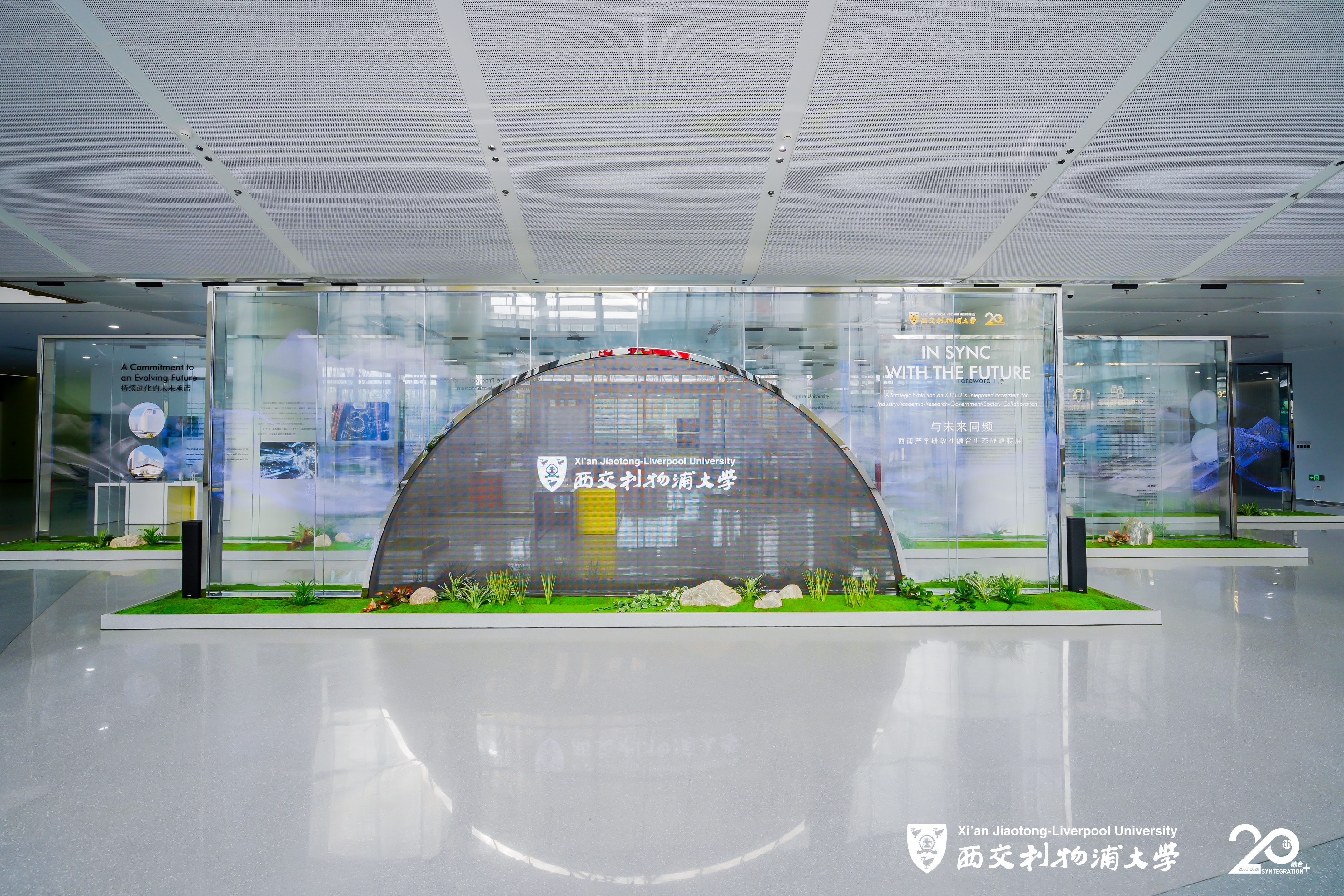 生命科学楼一楼大厅设置了《与未来同频——西浦产学研政社融合生态战略特展》,集中展示西浦在新时代科技革命与产业变革背景下的战略实践与系统创新,呈现学校以“产学研政社”融合生态推动教育、科技与人才协同发展的阶段性探索。