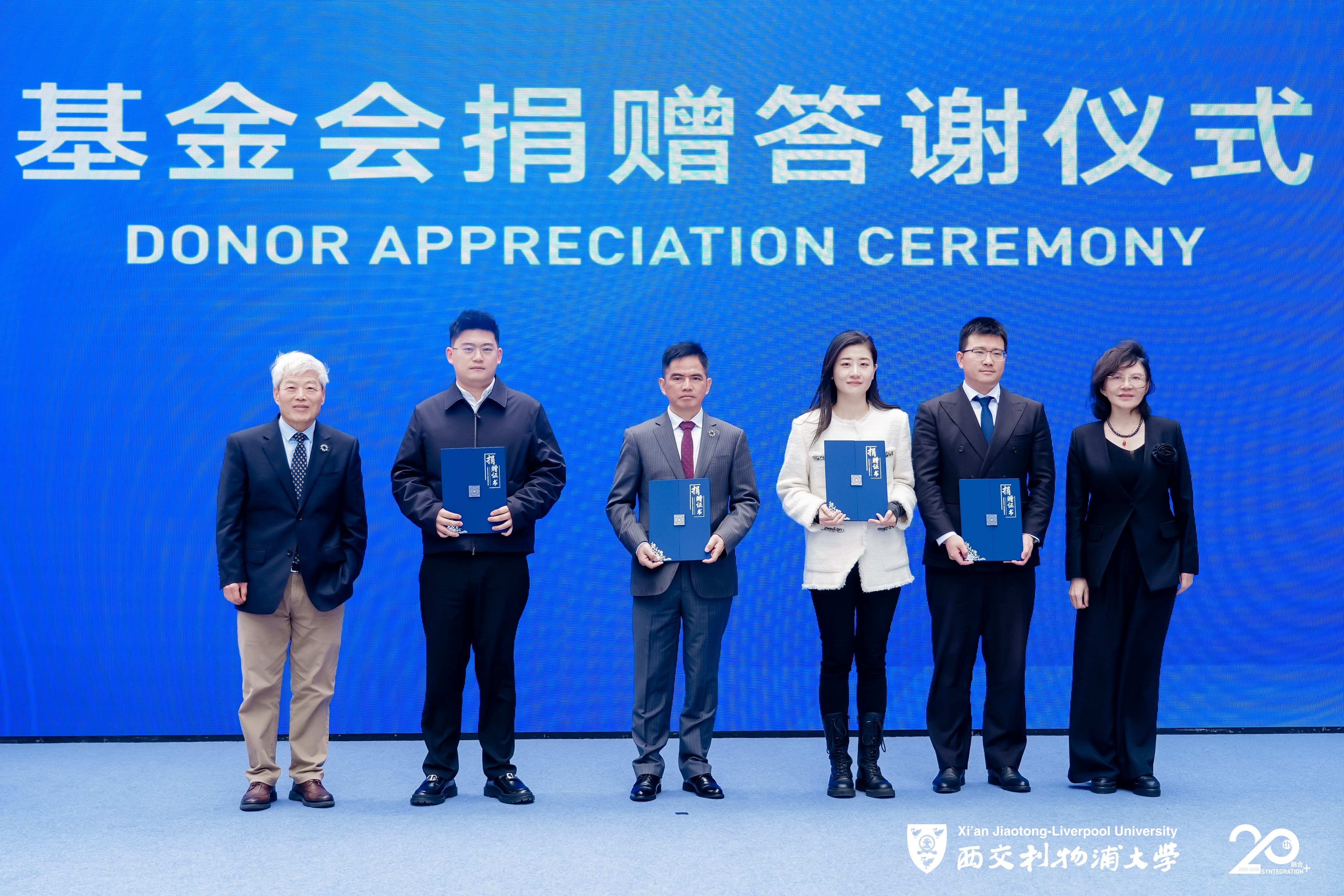 现场还举行了基金会捐赠答谢仪式。洲际绿电(海南)有限公司董事会主席李春萱、江苏神州半导体科技股份有限公司代表徐芳芳、苏州浦璟丰途教育科技有限公司董事长曹艺珩、瑞坤教育科技发展(苏州)有限公司总经理、西浦优秀校友代表贾蕴玉等向西浦发展提供支持。西浦执行校长席酉民教授、西浦副校长钞秋玲教授为其颁发捐赠证书。