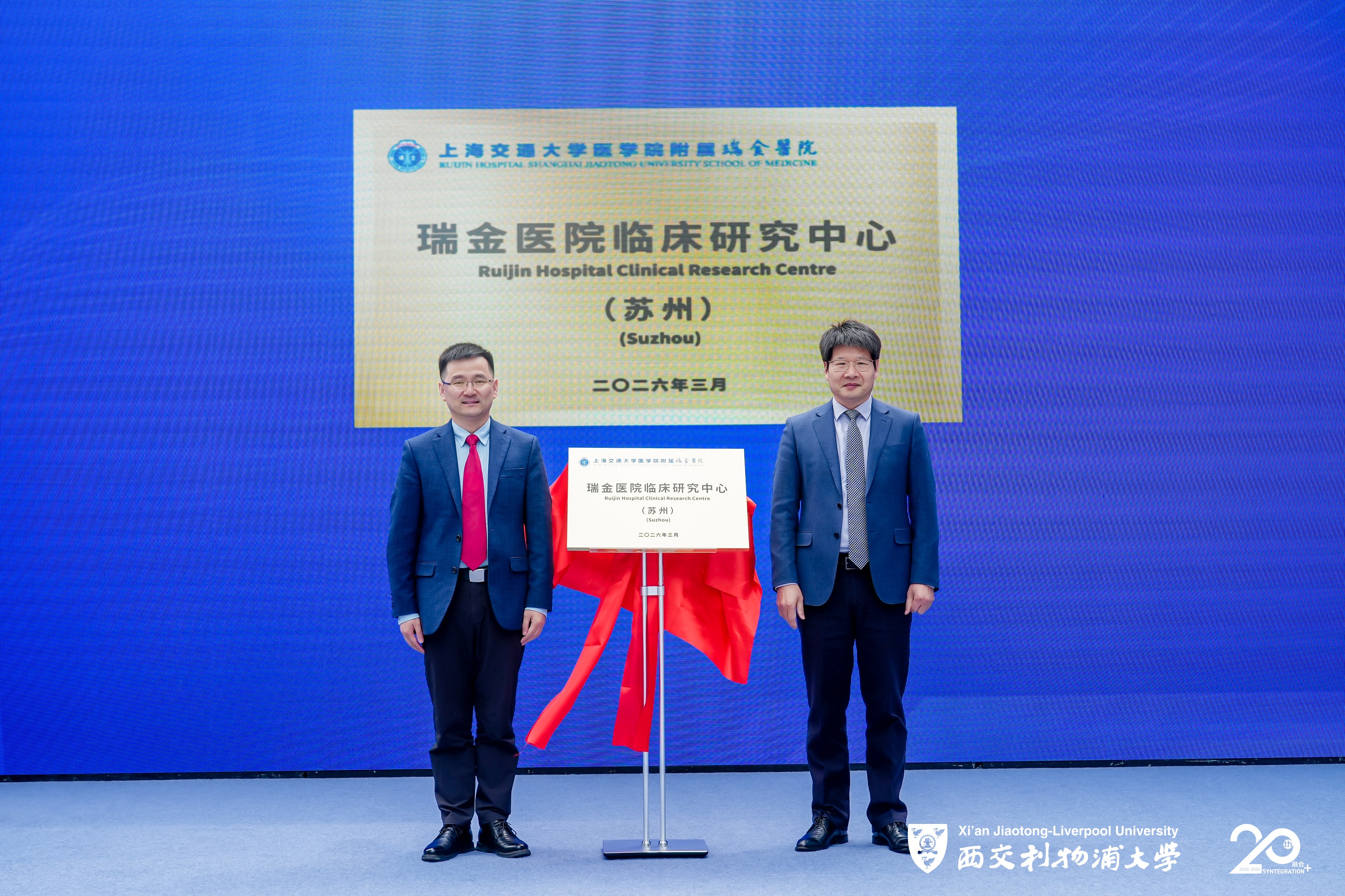 活动现场还举行了瑞金医院临床研究中心(苏州)揭牌与入驻仪式,由西浦副校长阮周林教授与上海交通大学医学院附属瑞金医院科技发展处处长崔文国共同揭牌。该中心是瑞金医院立足长三角区域发展需求、进一步推进临床研究与科技创新的重要布局,这也是西浦持续汇聚优质创新资源、着力打造开放协同创新生态的重要体现。