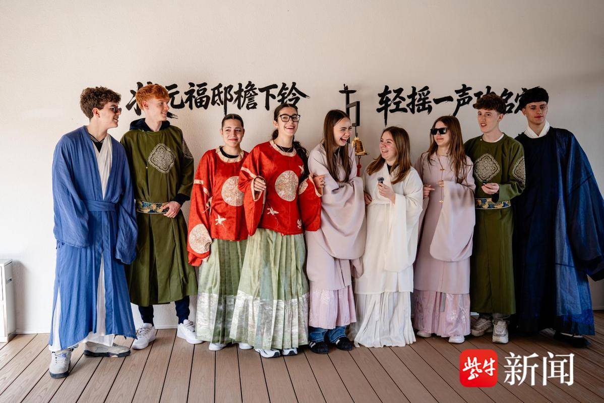 青团的余香未散,一场别开生面的汉服体验又将活动推向高潮。当金发碧眼的少年们换上精致的华夏衣冠,古色古香的庭院里顿时衣袂飘飘、笑语盈盈。从好奇打量到自信展示,他们在一衣一袂、一礼一仪间,触摸到了中华“礼”文化的内核,定格下东西方文明在江南春风里相遇的美好瞬间。