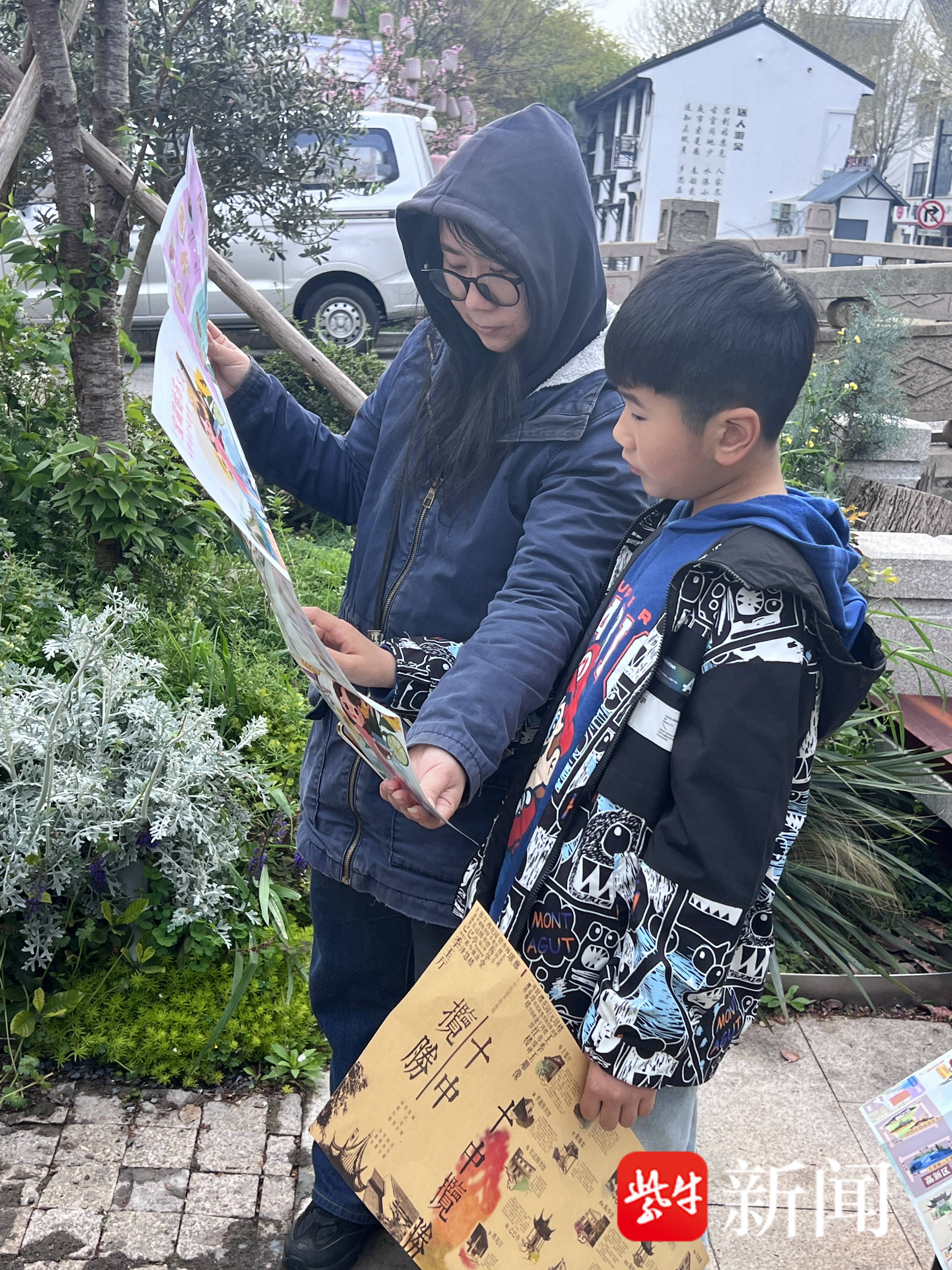 乘坐游船到达苏州织造署旧址,学生们走进全国重点文物保护单位,探寻明清江南三织造之一的历史渊源。志愿者结合青少年视角,讲解织造署作为康熙、乾隆南巡驻跸之地,以及与《红楼梦》的深厚渊源。瑞云峰、头门、西花园等核心景观一一呈现,学生们在历史场景中触摸姑苏记忆。苏州沧浪实验小学四年级学生邓涵睿手持“十中揽胜”地图,仔细研读,不时与妈妈交流感兴趣的地点。“十中的校园特别美,是我向往的一所高中。”他言语中透出憧憬。
