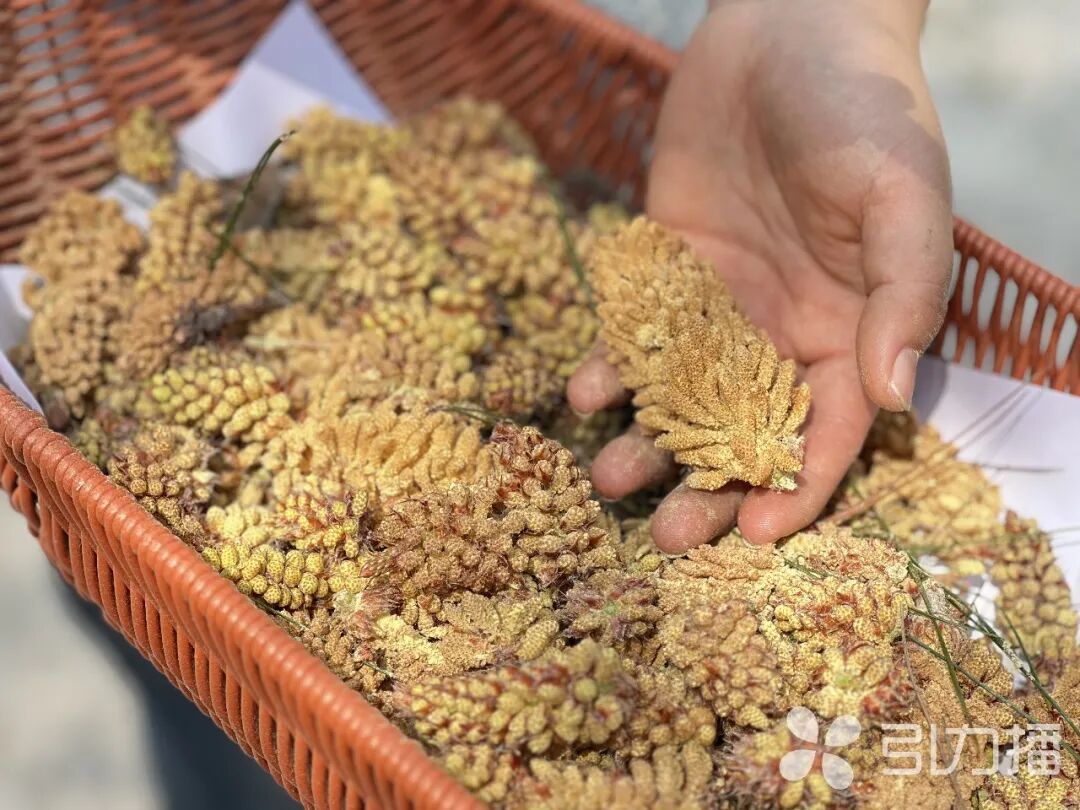 据旺山村民介绍,松花花期很短,开花后满打满算只有一周最佳采摘期,等过了清明松花就落了,而且十斤花才出一斤粉,一斤松花粉收购价就要两三百元。