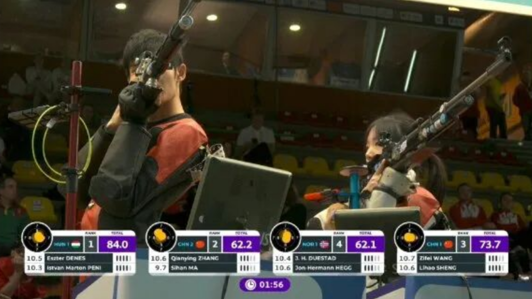 决定胜负的最后一组3发,王子菲/盛李豪稳定发挥,打出63.7环,匈牙利选手潘尼则发挥失常有一发只打出9.8环。最终,中国组合逆转收获冠军。
