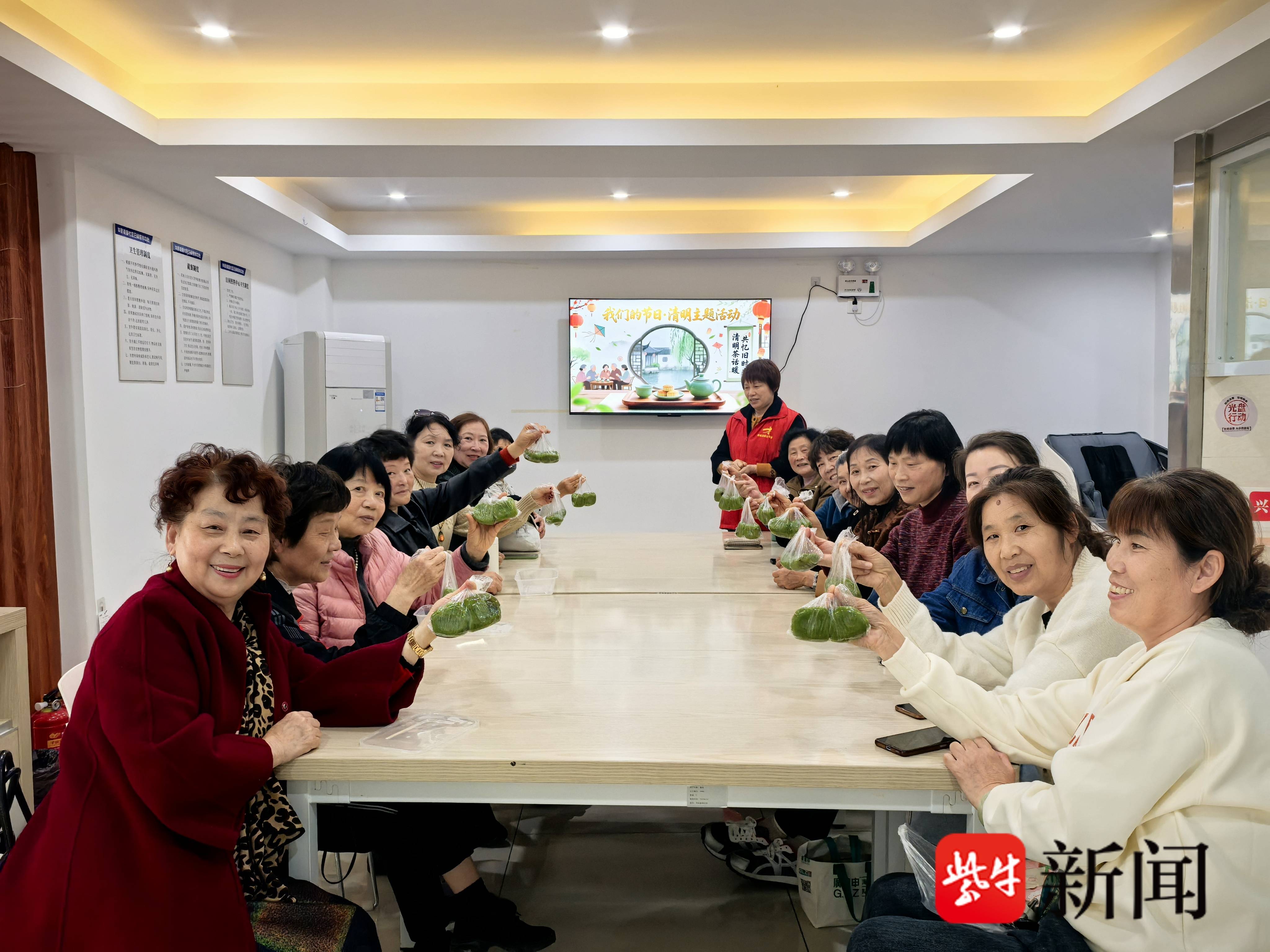 活动现场,工作人员与志愿者提前布置了青团摆台并为每位长者准备了双色青团。老人们陆续到场围坐成圈,品尝着刚蒸好的豆沙青团,在茶香氤氲中开启了一场跨越时光的对话。
