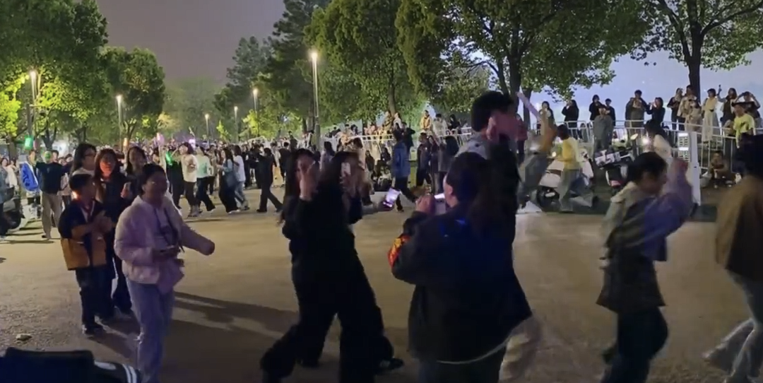 场馆外,大批没有抢到票的歌迷自发大合唱。图源:@苏州新闻