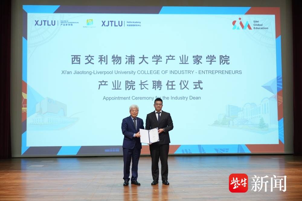 挂牌仪式后,席酉民教授为贾蕴玉(下图右)颁发聘书,聘任其担任西浦产业家学院“一带一路”事业部(新加坡)产业院长。