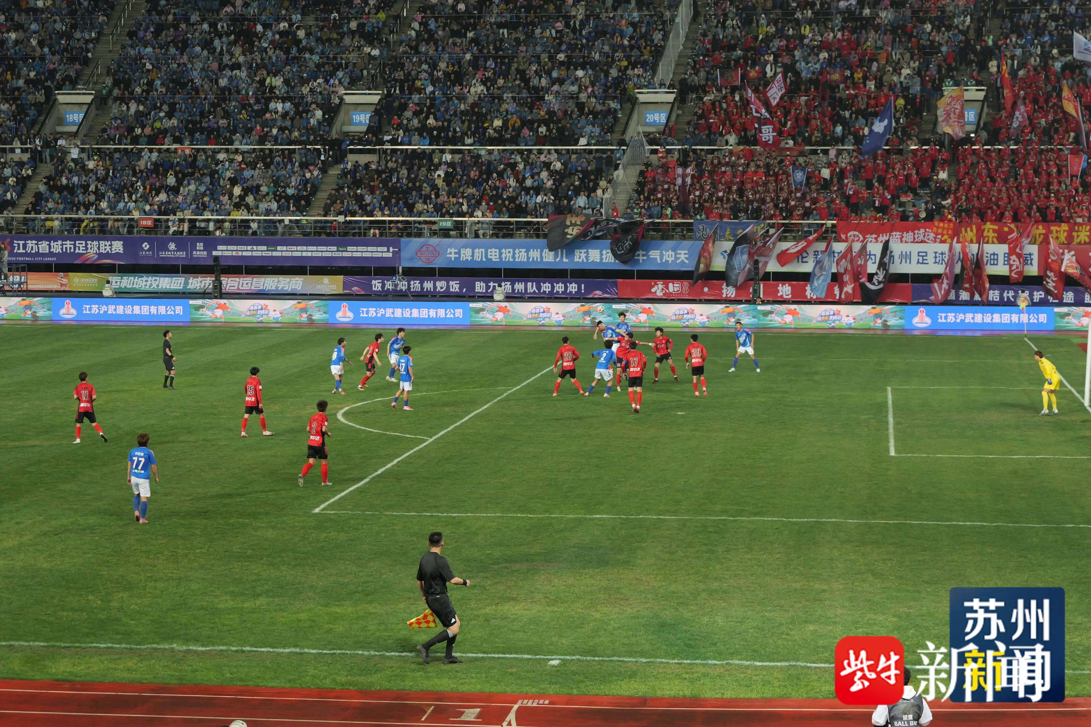 近日,2026年江苏省城市足球联赛正式打响,你观战了吗?首轮比赛扬州队VS苏州队,经过90分钟的激烈角逐,苏州队以1:0比分战胜扬州队,拿下2026“苏超”首胜,实现新赛季开门红。