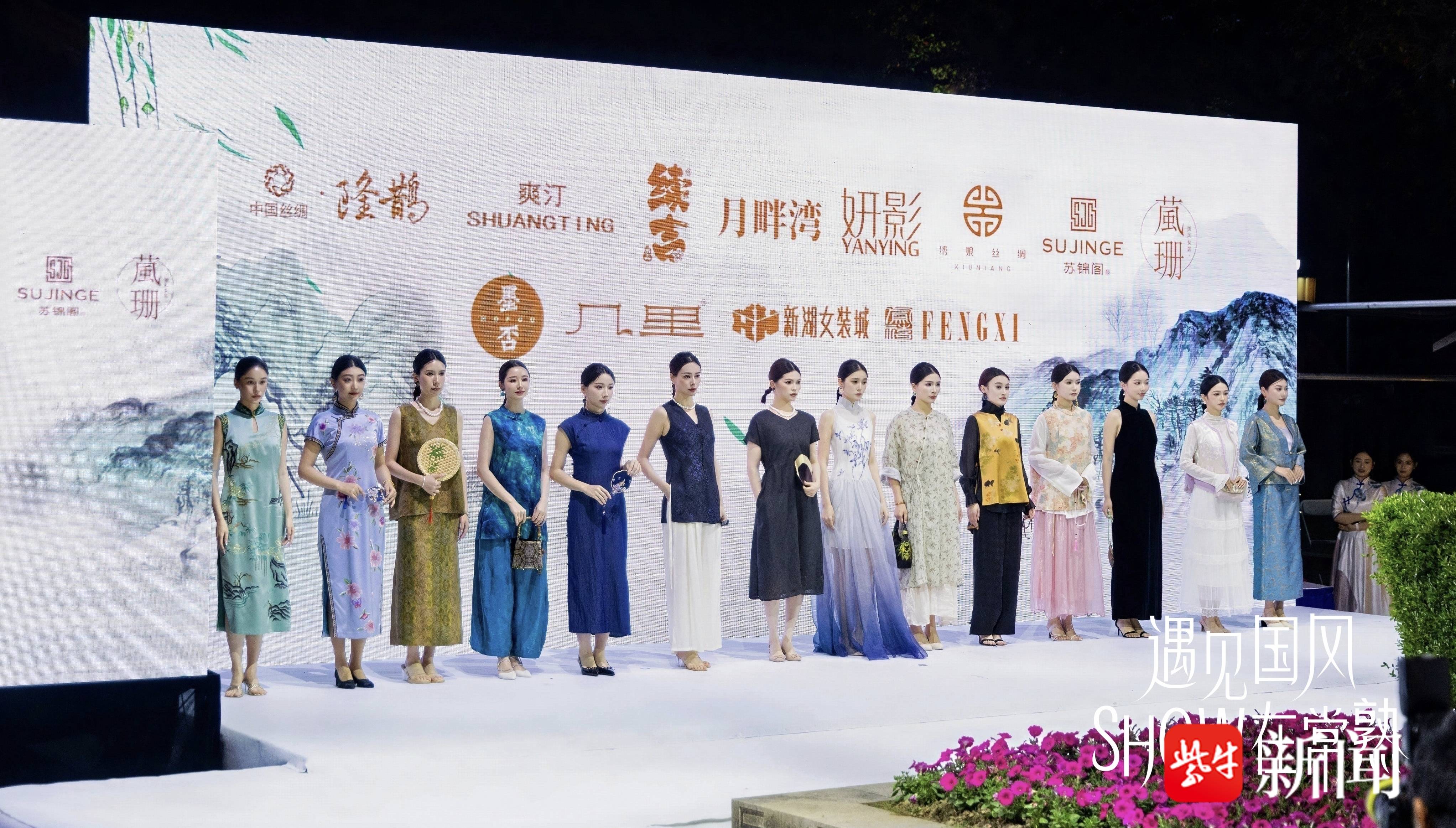 傍晚时分,红毯秀与T台走秀相继上演,品牌主理人、设计师与红人身着新中式服装亮相,12家常熟头部女装为主的商家联袂呈现50余款新品首发,从日常通勤到礼服、旗袍,新中式的多面性被演绎得淋漓尽致。