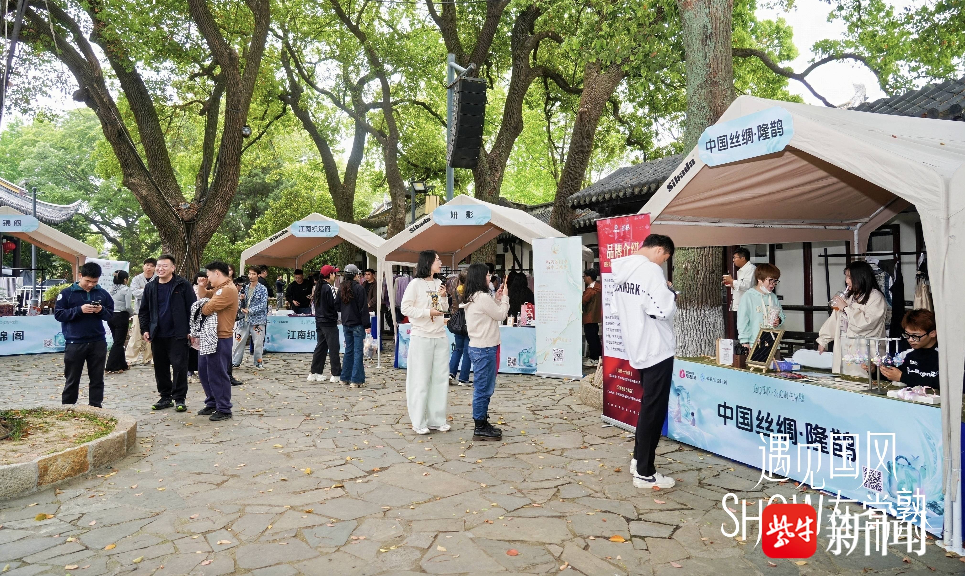 活动现场,国风市集成为一大亮点。17家常熟头部女装为主的商家沿园设摊,涵盖新中式女装、设计师品牌产品及改良旗袍等品类,还引入了非遗文创产品。市集围绕新中式国风主题,融合纺织溯源、历史文化与现代设计,打造出独特的国潮逛展体验。市民张女生告诉记者:“好几个品牌我平时在抖音直播间里经常刷到,没想到今天能在线下直接买到实物。”