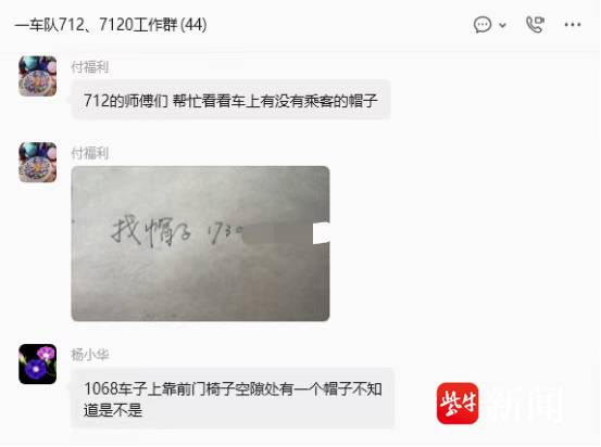 然而消息发出时,老人先前乘坐的公交车驾驶员杨小华师傅正巧在场地休息,注意到消息后,立刻联想到了当时捡到的一顶帽子。最终在三位师傅的接力帮助下,老人顺利取回了自己的帽子。