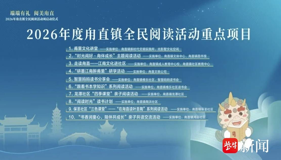 据了解,2026年度甪直镇全民阅读活动重点项目覆盖全年、精彩纷呈,让广大市民共同享受阅读乐趣,让书香传递温暖、凝聚力量。
