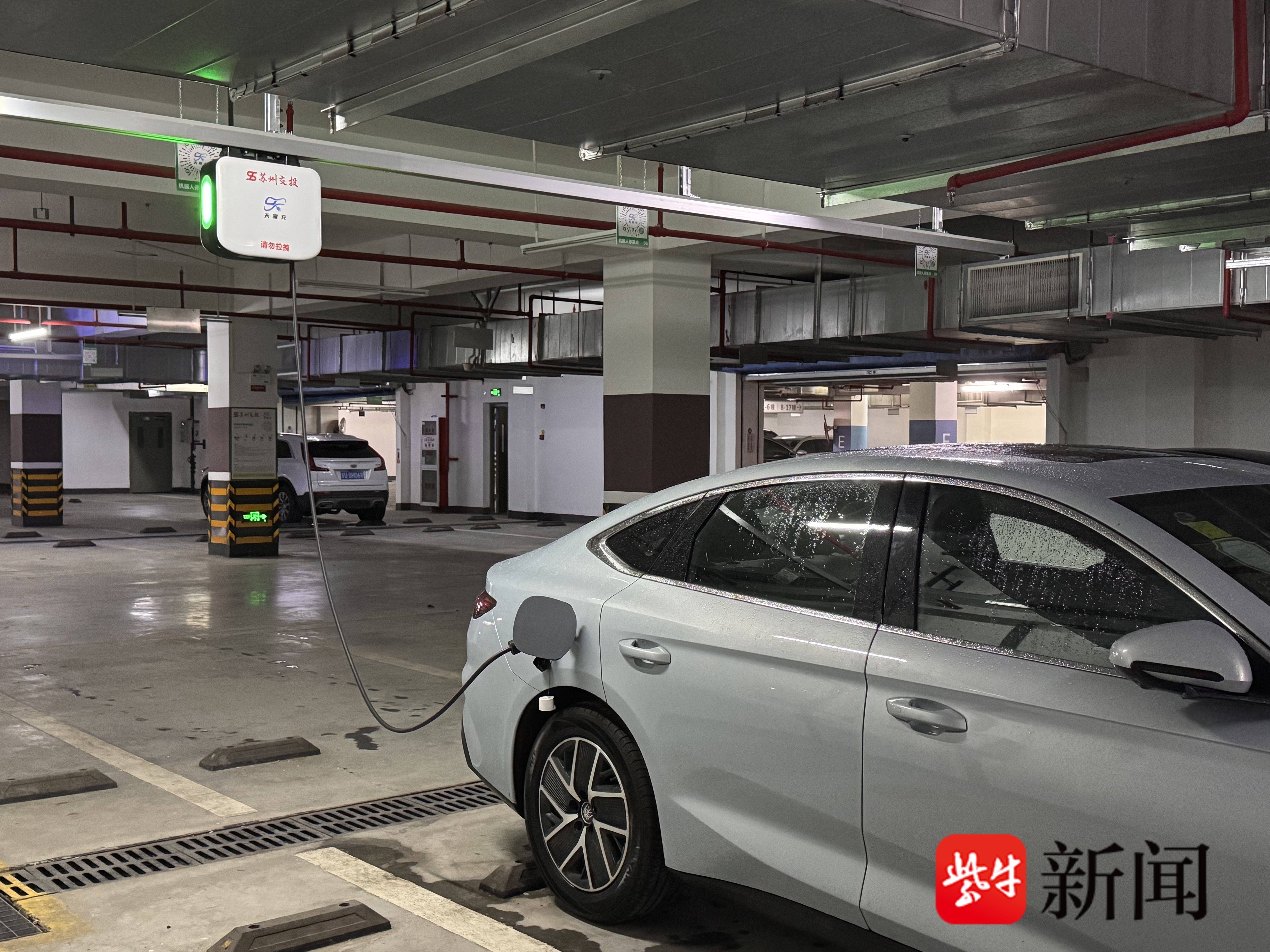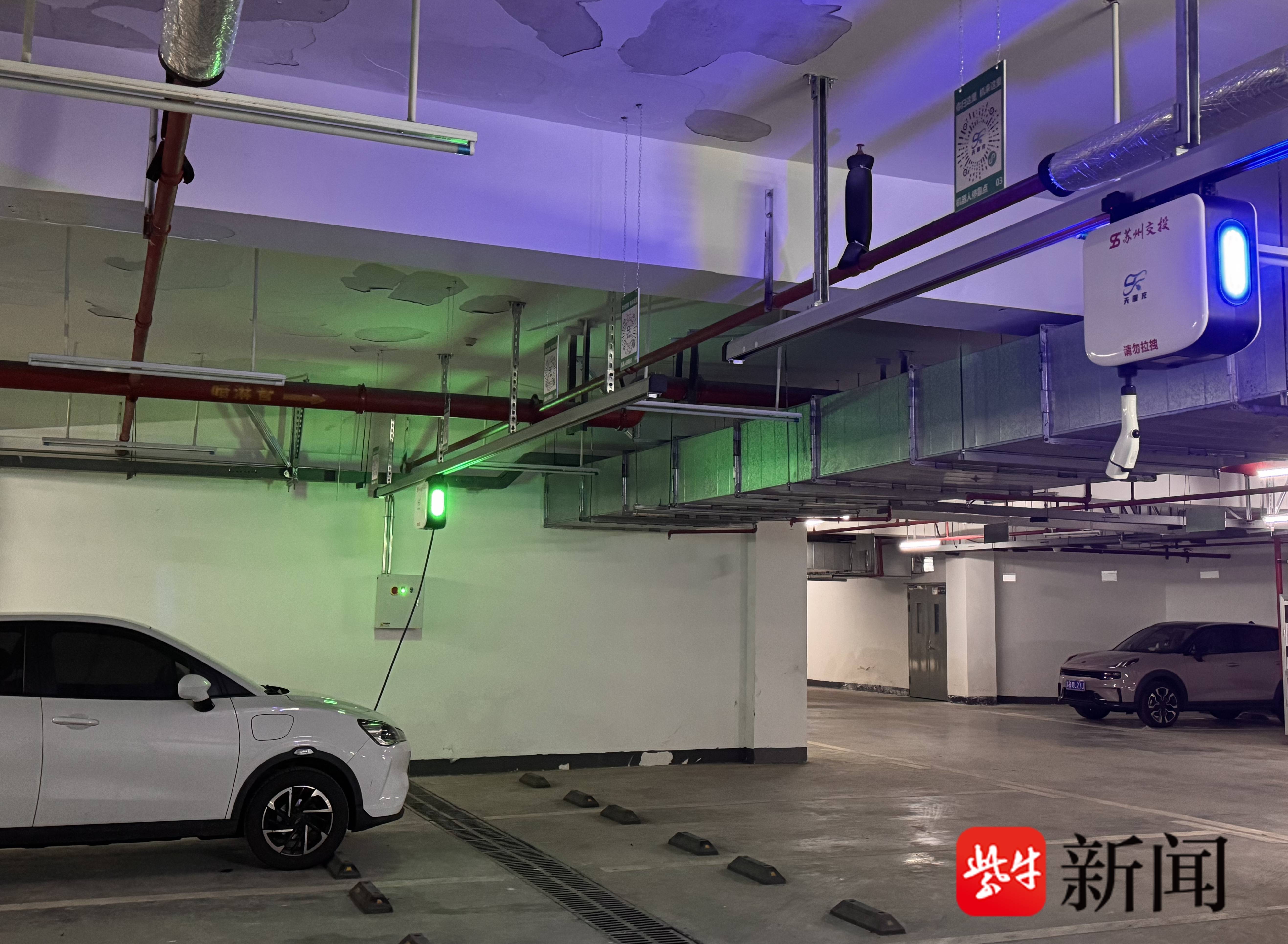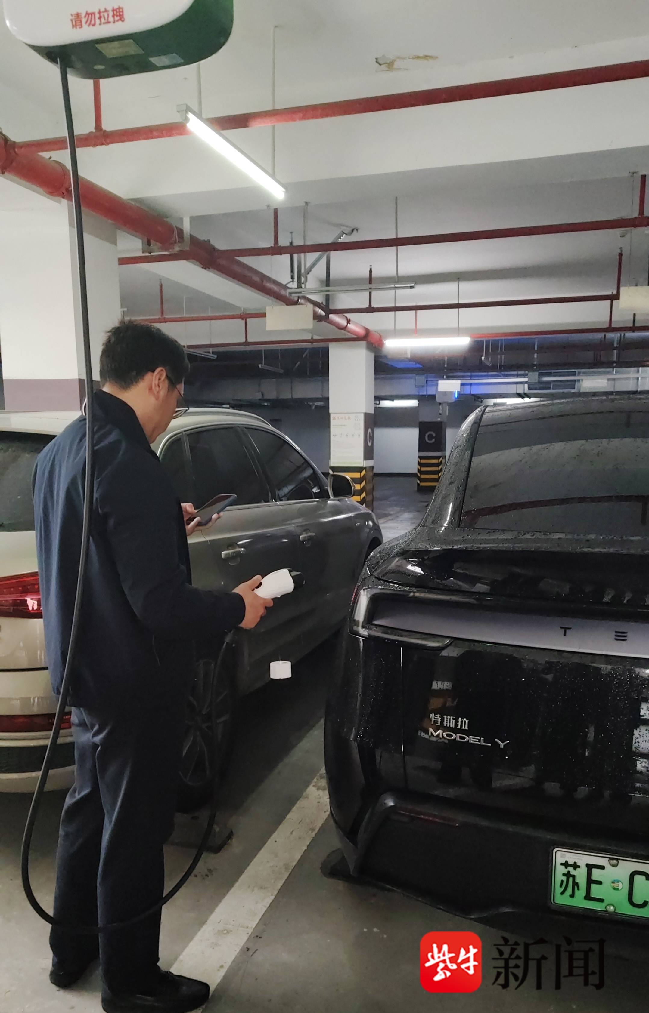 4月23日,扬子晚报/紫牛新闻记者在西渚花苑北区地下停车场看到,业主马先生将车辆停入车位后,打开手机里的充电小程序,选择“预约充电”,几秒钟就完成了预约。几乎同时,远处轨道上的充电机器人接到指令,在AI调度系统的路径规划下,沿着轨道平稳滑行至车位上方,随后向地面缓缓放出充电枪,马先生将充电枪插入汽车充电口即可充电。整个过程不到两分钟,无需车主来回奔波,也不用再为找桩、挪车烦恼。
