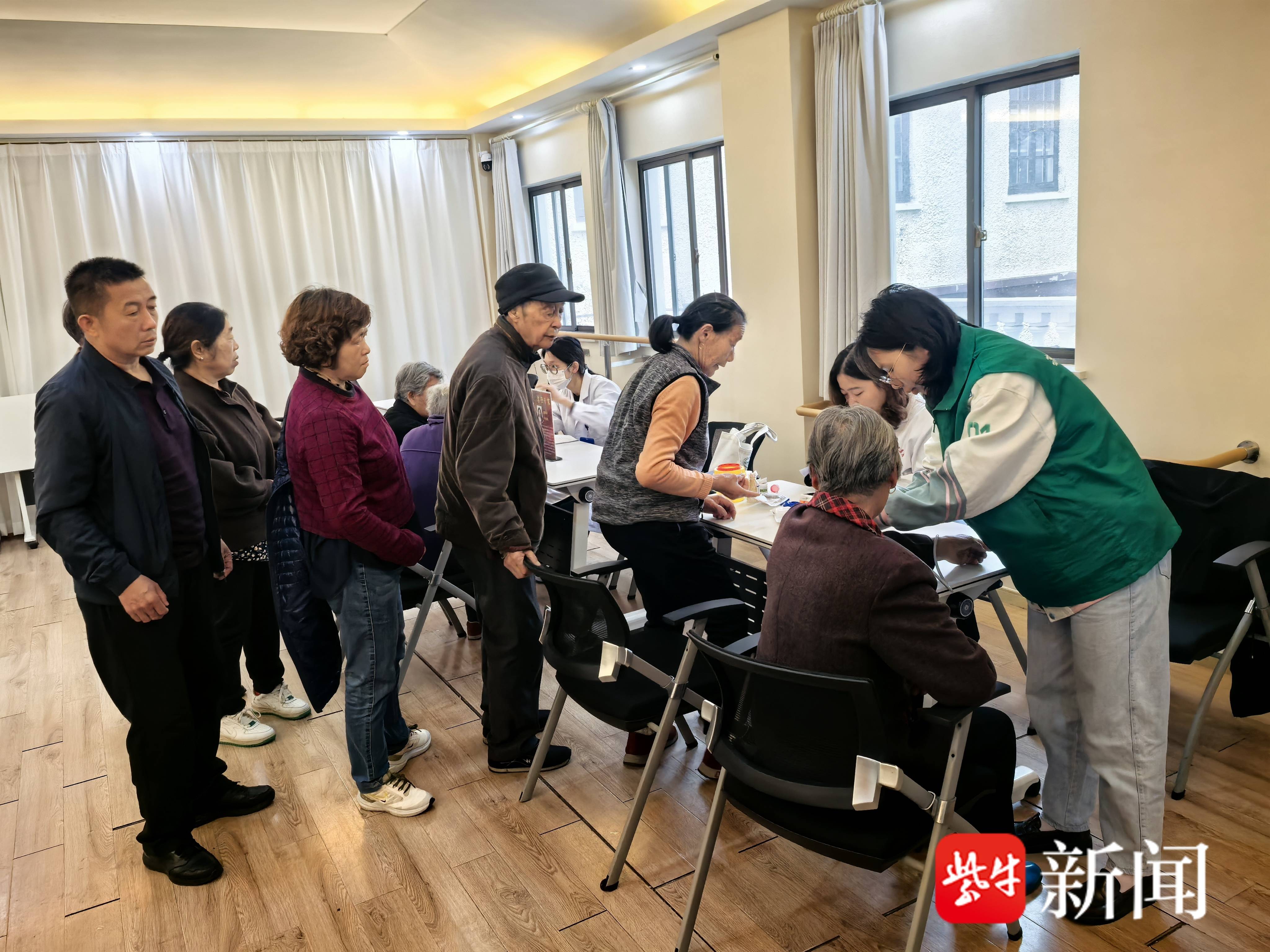 活动现场,社区民兵连成员全程维持秩序,为高龄老人提供搀扶、引导等贴心服务;妇联巾帼志愿者向女性居民发放健康手册,普及“两癌”筛查政策。姑苏区人社局工作人员同步设立政策咨询台,解答医保报销、长期护理保险等民生关切问题,实现“健康+政策”双服务下沉。