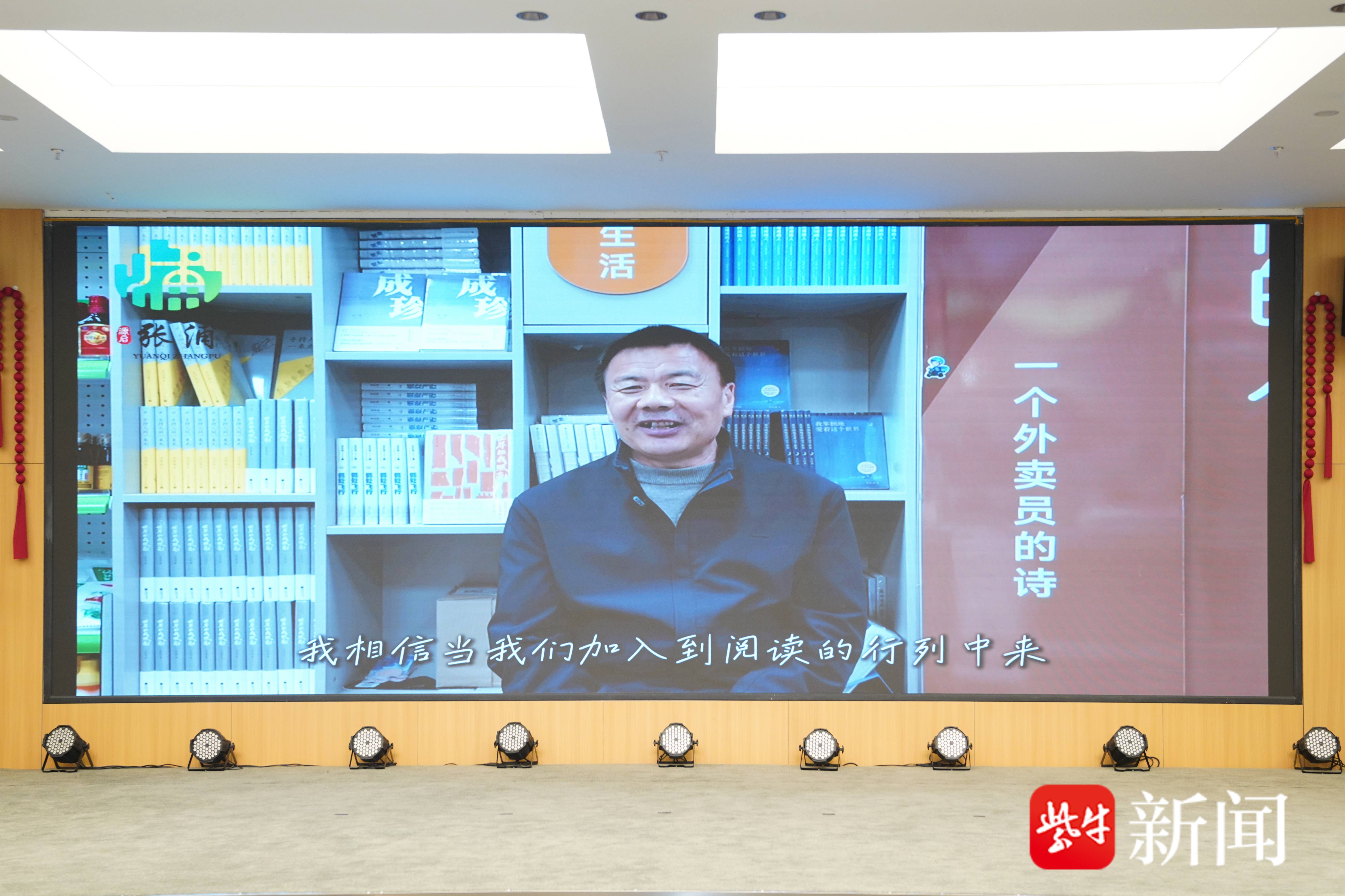 “张浦镇的朋友们大家好,我是外卖诗人王计兵。很遗憾没有办法参加这次2026我们张浦镇的全民阅读活动,也祝福我们的活动能够圆满成功。”虽未能亲临现场,但王计兵老师特意录制视频,为现场观众带来了一场真挚动人、直抵人心的阅读分享,隔着屏幕传递着书香力量与生活热忱。
