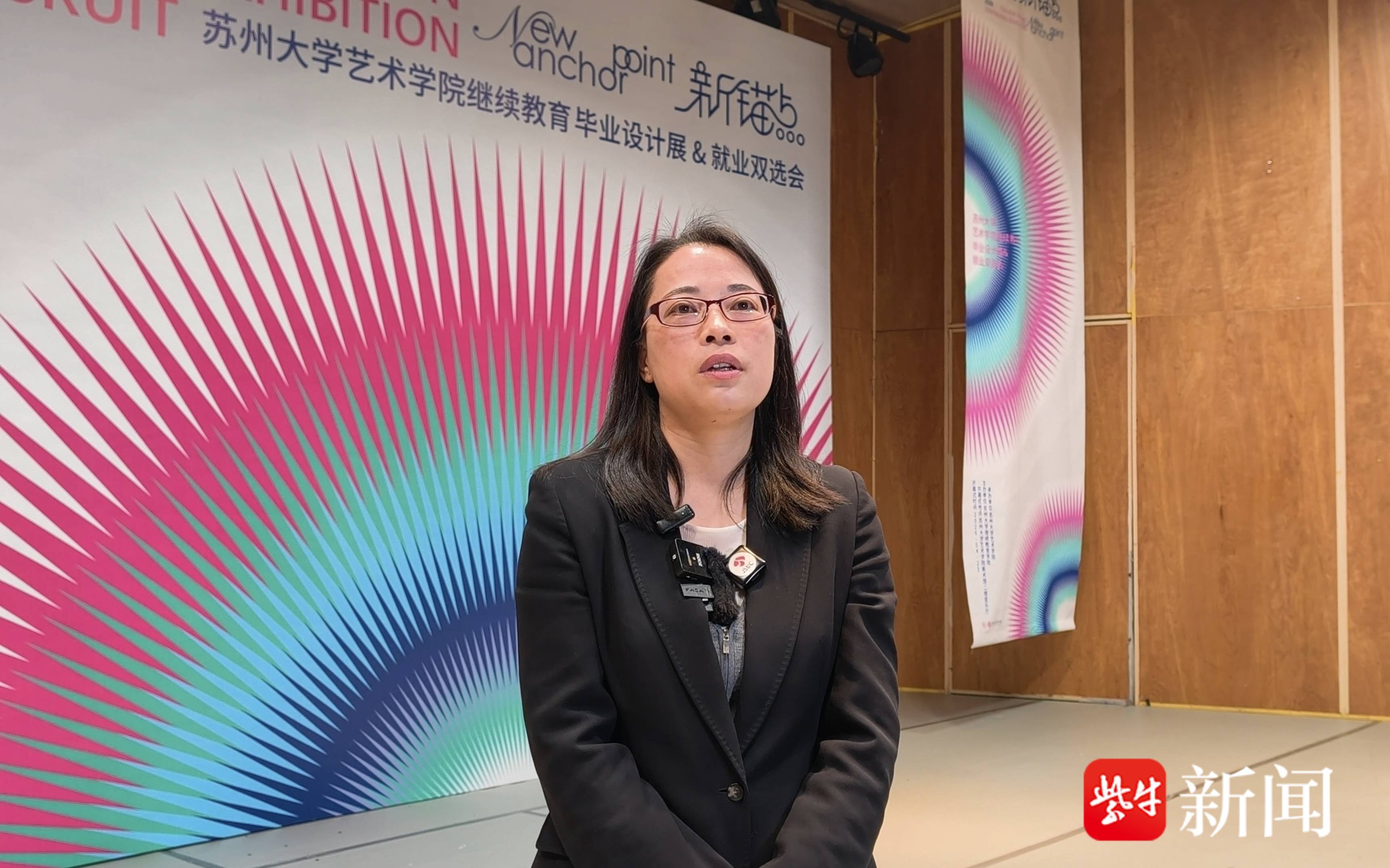 “活动的最大亮点就是我们把毕业展和企业对接联动起来,核心目的就是立足就业是最大的民生,把学院的育人成果展示与毕业生的就业工作紧密结合起来。学院扮演好人才红娘和就业桥梁的角色,一头牵着学生的毕业就业、成长成才,另一头连着企业的选才用人,促进双方精准匹配,双向奔赴。”苏州大学艺术学院党委书记徐美华介绍。