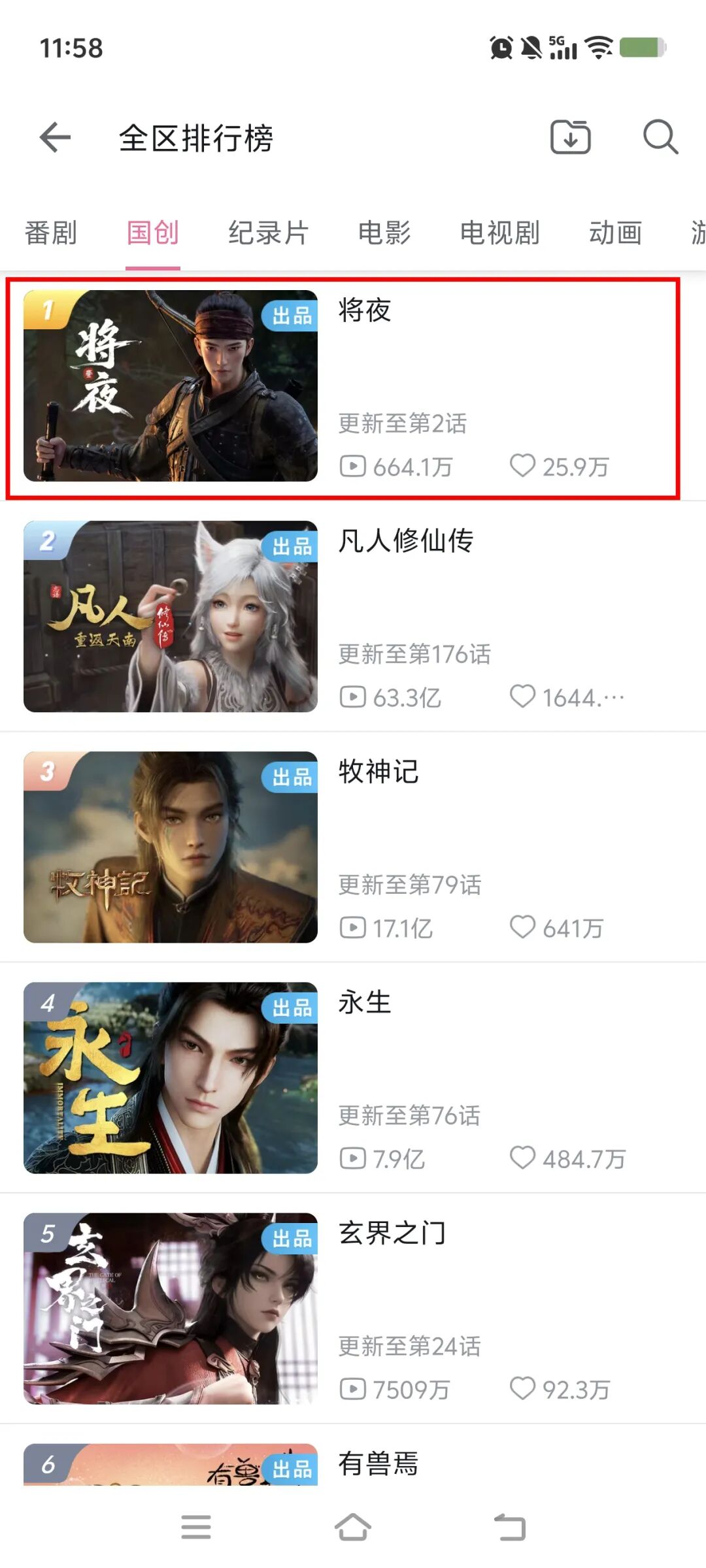 位于第二的国漫《凡人修仙传》