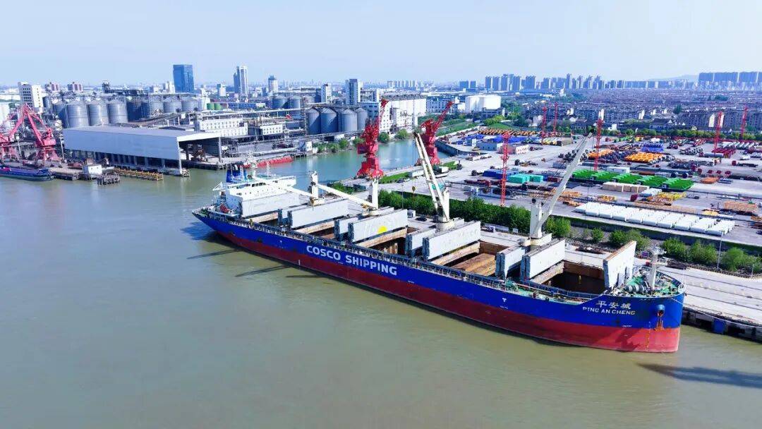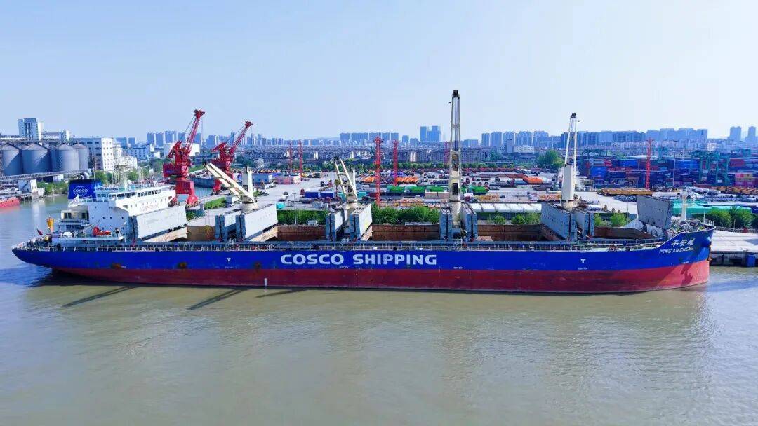 去年9月,中远海运特运“GREEN SUAPE”轮装载3万多吨储能柜、吨袋、圆钢及其他设备项目货,开启南美西直达快航(苏州港张家港港区—钱凯港)首航征程。这是我国首条直达秘鲁钱凯港的件杂货班轮航线,覆盖智利伊基克、安托法加斯塔等港口,直连张家港与南美关键物流节点。