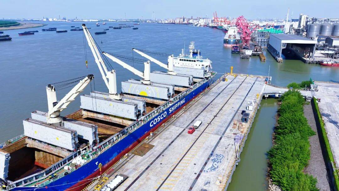 为了保障这条航线上货物流通顺利,苏州港张家港港区深化企地融合、强化港航协同,与中远海运特运一起探索推出“重进重出,一港装”的模式:升级港口硬件,针对重大件、“新三样”等特型货类,优化装卸工艺,压缩通关时间;主动对接企业需求,量身定做全程物流方案。