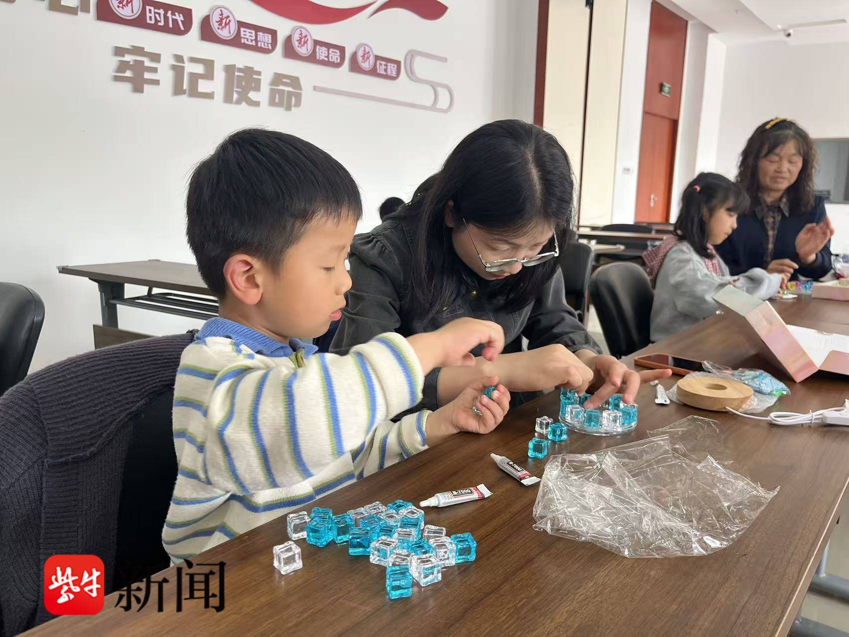 阅读结束后,创意DIY马克笔转筒小夜灯环节拉开帷幕。社区志愿者讲解制作步骤与安全要点,孩子们在家长协助下,将奇思妙想融入作品,志愿者进行指导。一件件色彩斑斓的小夜灯亮相,孩子们自豪地分享创作灵感,现场暖意融融。