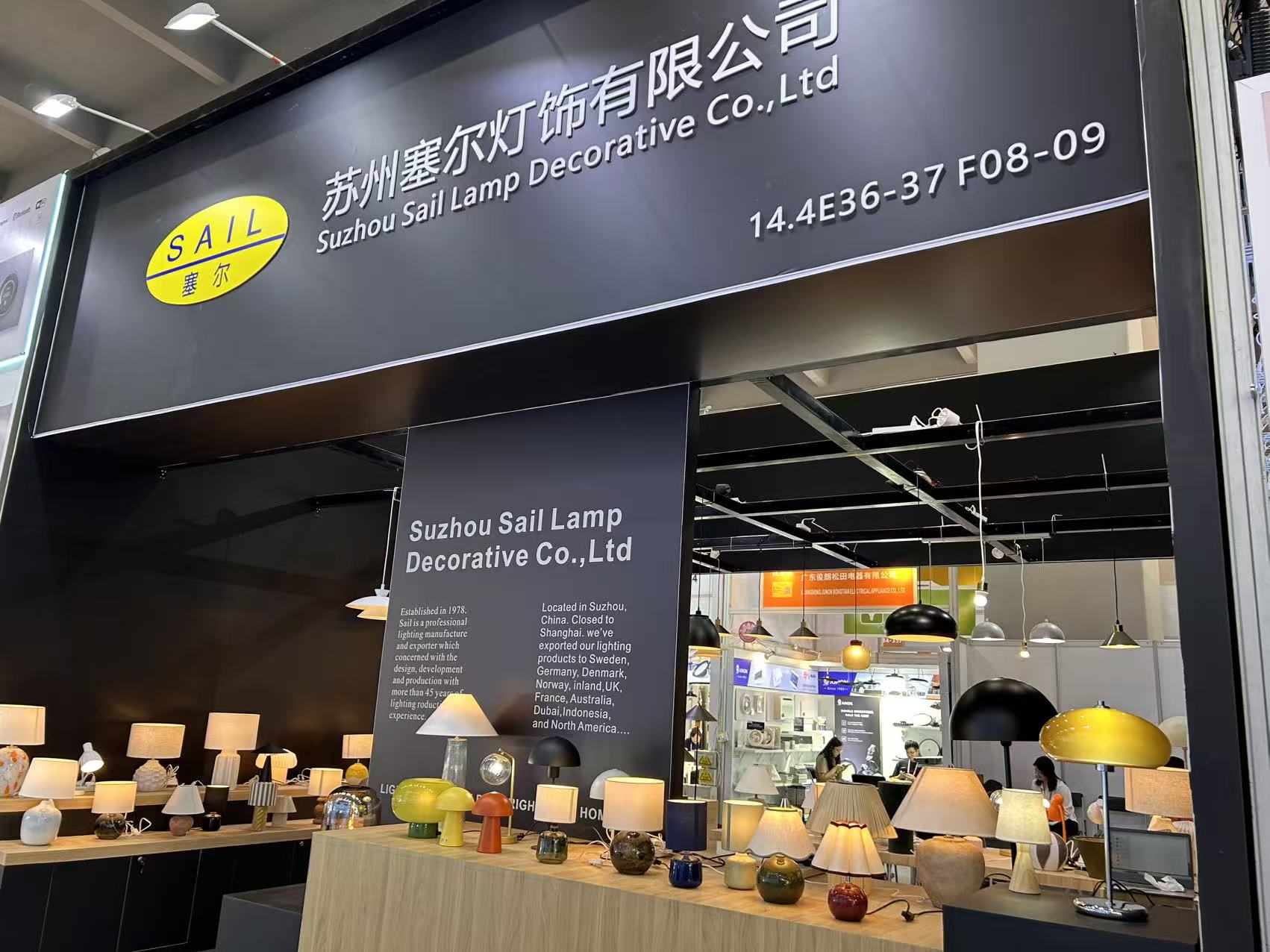 苏州塞尔灯饰有限公司主要展出了台灯、落地灯、吊灯及各种不同质地、款式的灯罩,产品远销德国、英国、意大利等20余个国家及地区。为满足客户个性化需求,公司引进了金属丝焊折一体生产设备,以及X射线荧光光谱仪等先进的质量分析检测设备,能准确检测塑料、金属的性能与化学成分。目前,公司已通过ISO 9001:2015质量体系认证、FSC认证、CCC认证等。