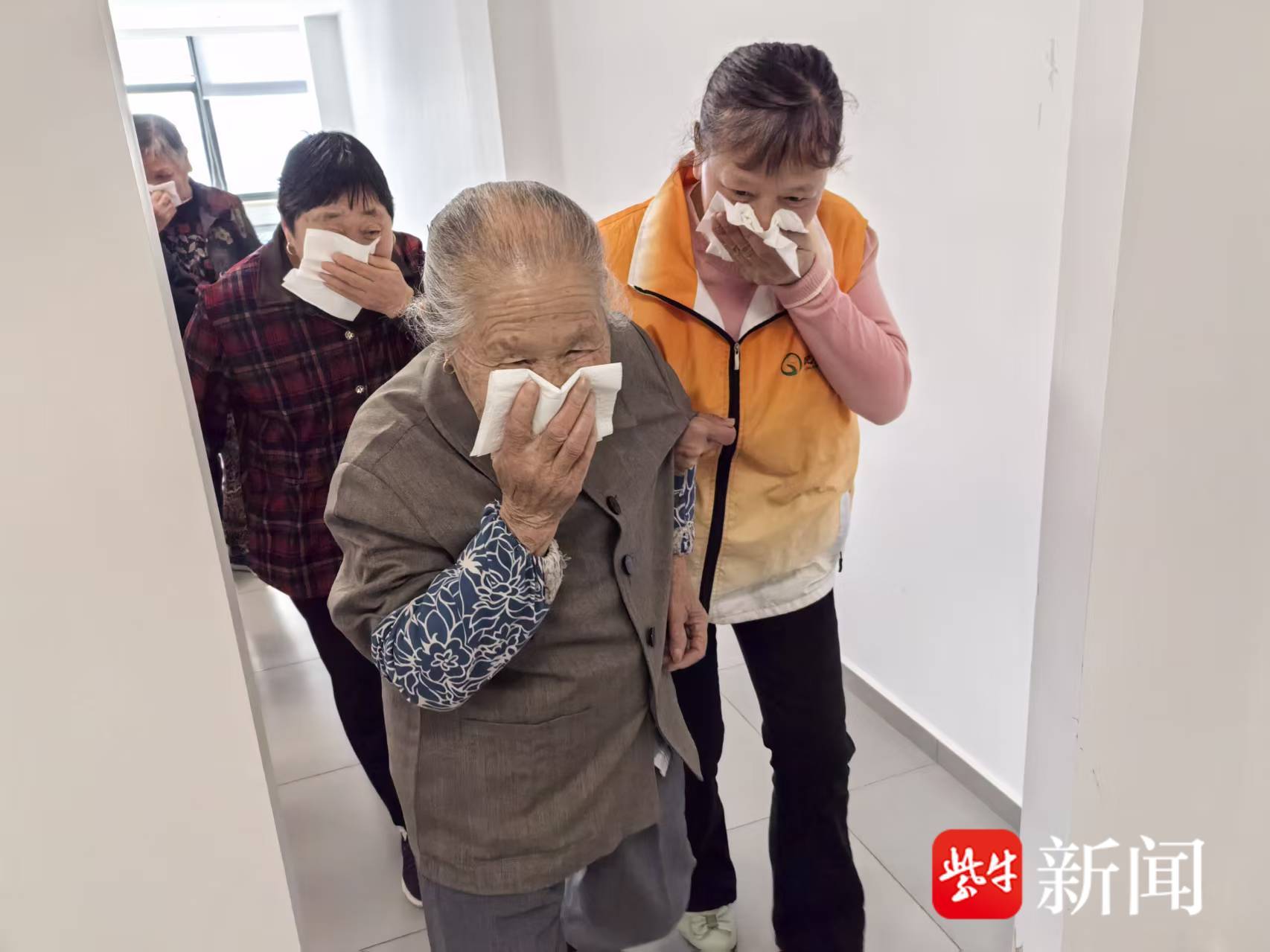 随后,活动进入模拟火灾疏散逃生环节。老人们在工作人员和志愿者的引导下,迅速用湿毛巾捂住口鼻,弯腰低姿,有序撤离。
