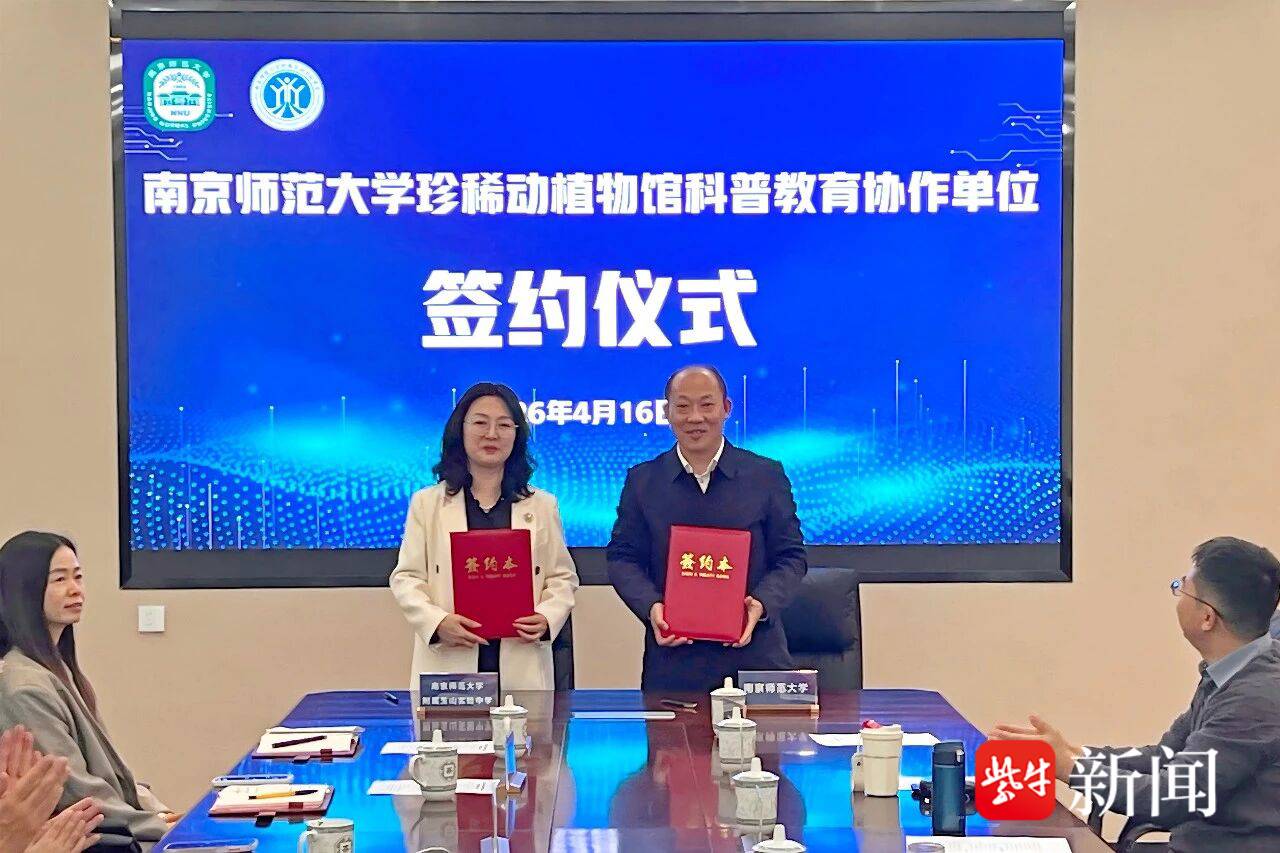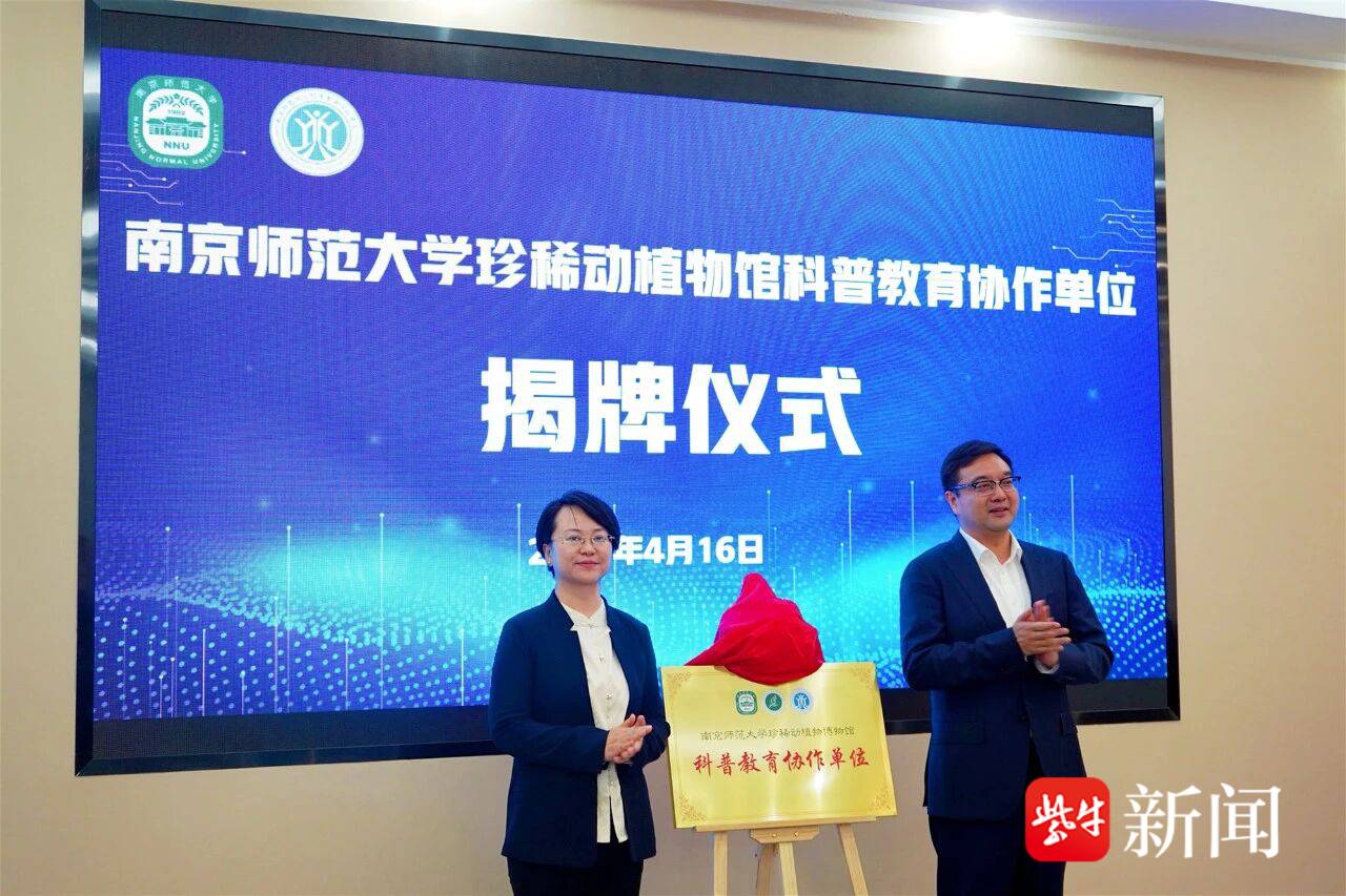 仪式上,南京师范大学珍稀动植物博物馆相关负责人作科普介绍,生动阐释馆藏标本的科学价值与科普意义,让在场人员对馆校合作的内涵有了更深理解。在与会人员的共同见证下,南京师范大学生命科学学院许小东书记与南京师范大学附属玉山实验中学刘海云书记共同签署了科普教育协作单位协议,标志着馆校协作正式落地。随后,昆山开发区社管局沈希局长与昆山市教育局黄萍副局长一同为南京师范大学珍稀动植物博物馆科普教育协作单位揭牌。活动中还成立了“南京师范大学附属玉山实验中学博物馆科学社团”,并举行社团揭牌仪式。该社团旨在为热爱科学的师生搭建常态化实践平台。