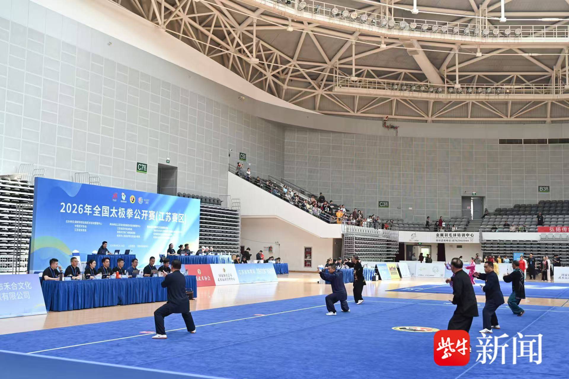 4月27日,2026年全国太极拳公开赛(江苏赛区)在常熟体育中心启幕。来自北京、上海、江苏、安徽、福建、河北、湖北等9个省市的90支队伍,共计1074名运动员、教练员及领队齐聚常熟,以拳会友、共展太极风采。