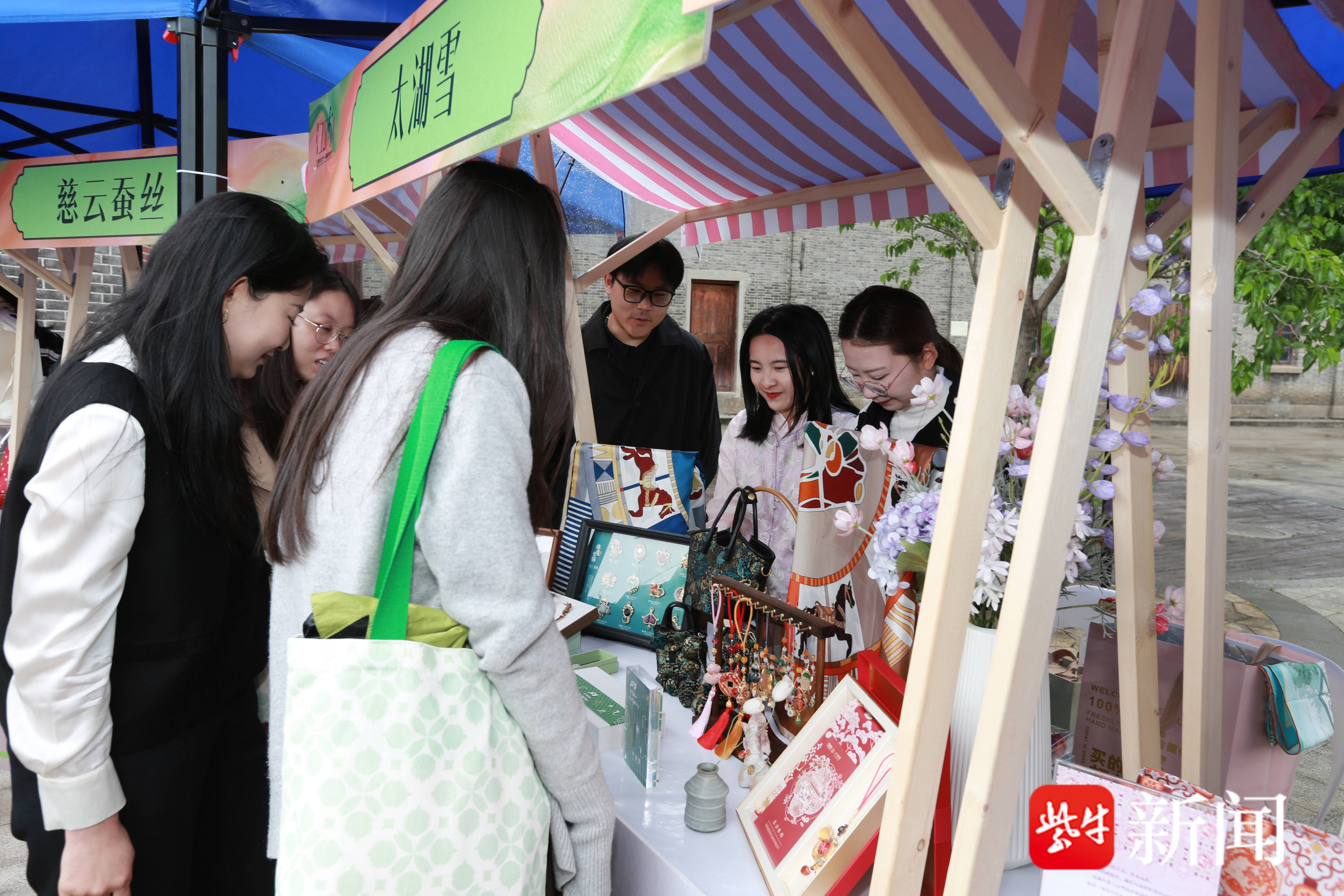 从宋锦的华美织造到苏绣的指尖乾坤,一针一线,尽是江南风雅。在活动现场的丝绸好物市集上,太湖雪、上久楷、龙泉禧里、娇古苏绣等十余家吴江宝藏丝绸企业,带着各自的匠心与故事纷纷亮相,一展吴江丝绸的锦绣风华。吴江游礼、震泽心意、欢聚吴江等展位,则展售了独具地方特色的吴江文创,以及文旅口袋书《欢聚吴江》等。让市民游客在烟火气与雅致感交织的市集里,将“丝绸生活”的美好悄然带回家。