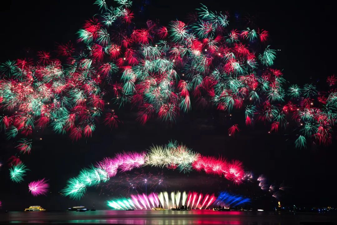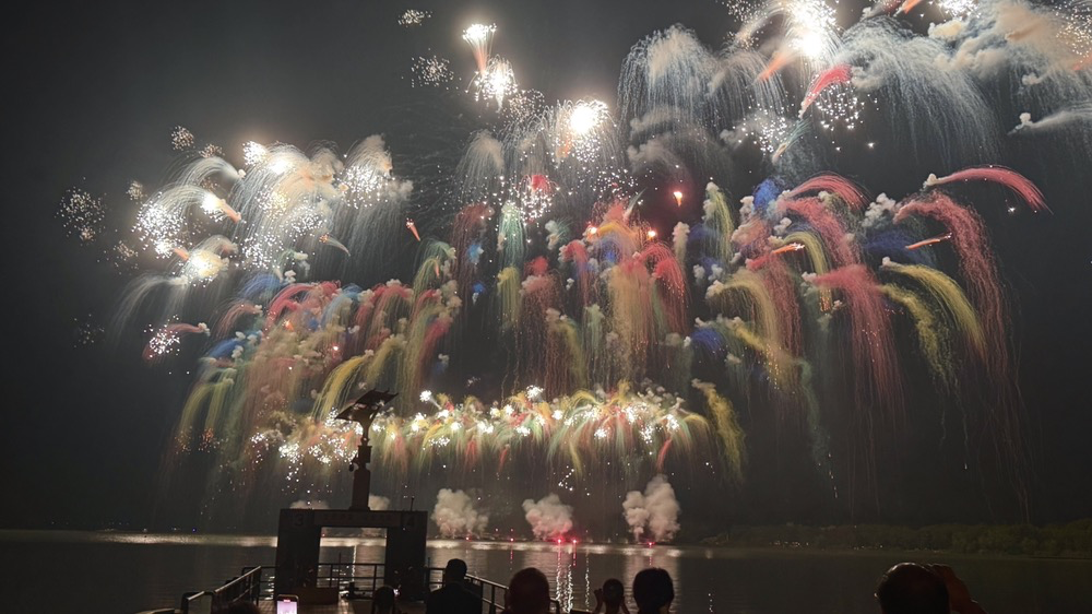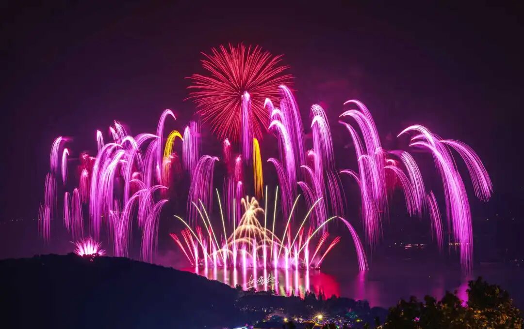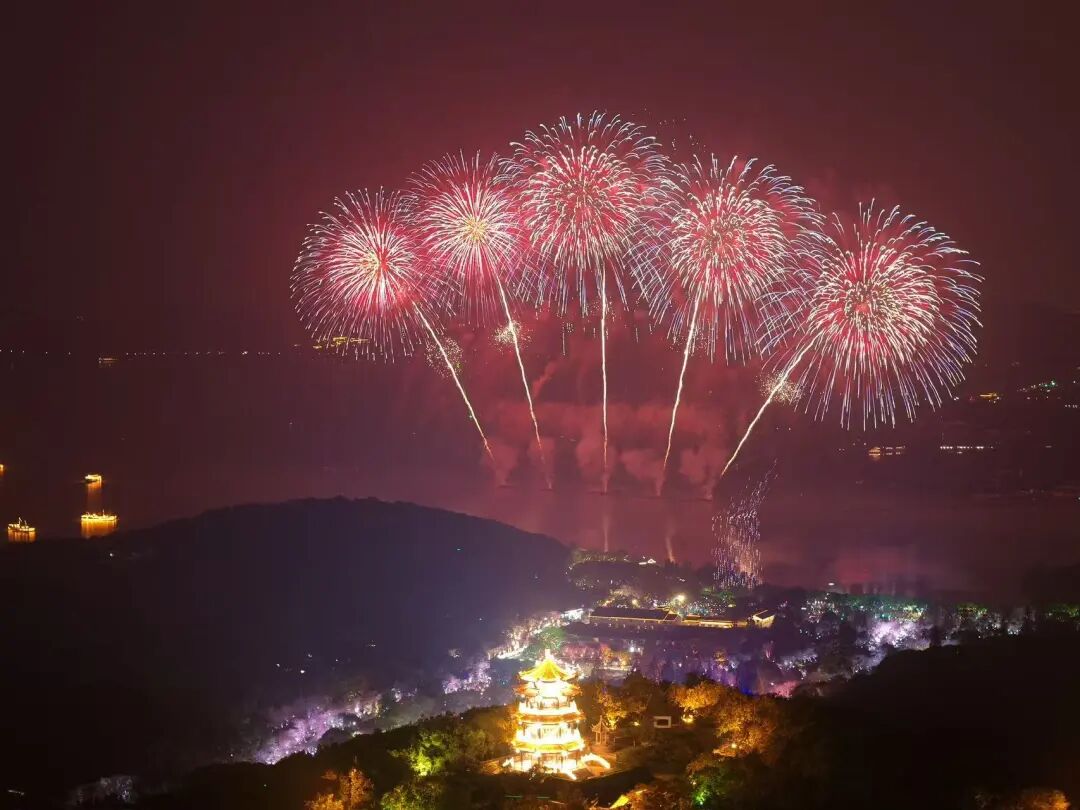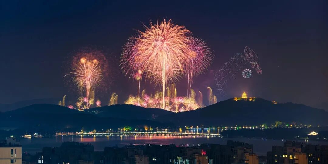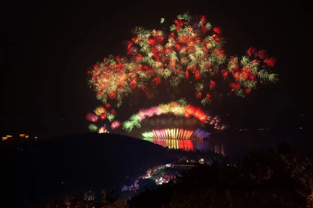 今年的烟花大会延续去年一主一副燃放平台,打造水陆共享的全景式观礼地。无论是在占据“C位”的长春桥畔上,还是在悠然行驶于湖中的游船中,抑或是刚刚修建完成的犊山大堤观光道上,都能捕捉到烟花不同角度的精彩。