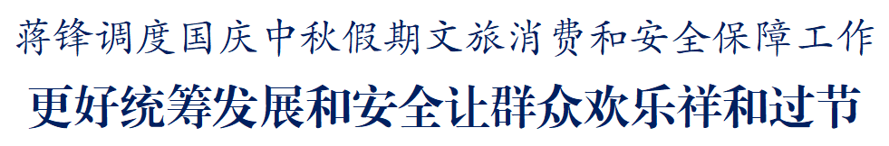 蒋锋指出,今年国庆中秋双节假期时间较长,群众文旅消费需求集中释放,同时出行流量加大、安全风险增高,各地各部门要以“时时放心不下”的责任感细之又细做好各项工作,努力以自己的“辛苦指数”换取群众的“幸福指数”“安全指数”。