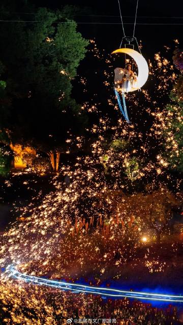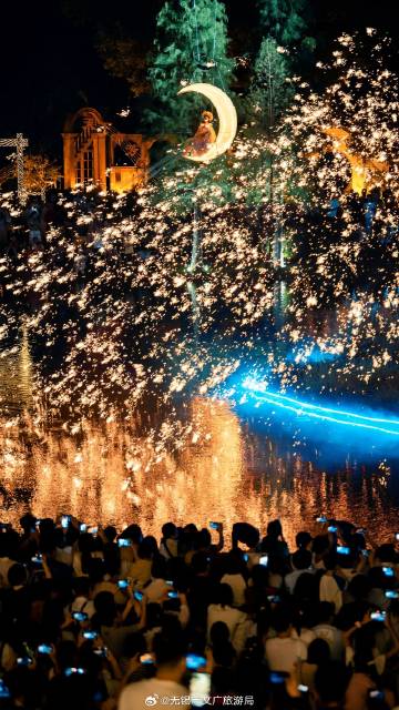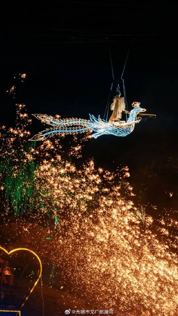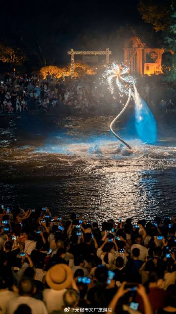 无锡梅园景区,白昼繁花似锦,夜幕华灯璀璨,丰富多彩的舞台节目,歌舞、杂技、飞天轮番上演,精彩纷呈,欢乐不断,花香里全是欢呼声。