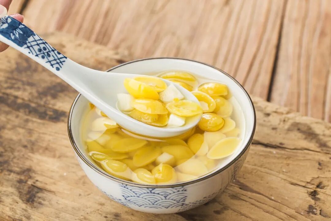 银杏果,又名“白果”。《本草纲目》记载“熟食温肺益气,定喘嗽,缩小便,止白浊”,具有养生功效。