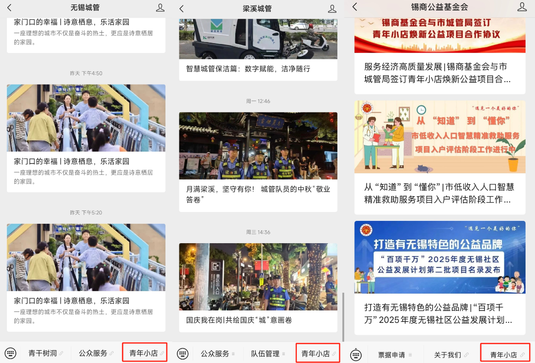 为支持鼓励更多的青年人自主创业,并以青年人创业载体为依托落实 “慈善进社区”“慈善进企业”等工作,在市城管局、团市委、市工商联的共同推动下,联合梁溪区城管局与锡商公益基金会发起实施青年小店焕新公益项目。项目主要聚焦帮助青年创业小店焕新店铺户外招牌,助力青年创业发展,入选该项目的店铺将获得店铺焕新公益资金支持、创业激励、品牌宣传引流等相关服务。该项目还得到了市场监管部门以及宁波银行的支持。
