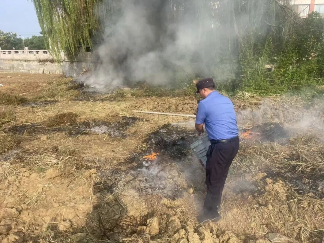 9月17日下午,官林中队队员吴意缘、宗文杰在官林司徒广场巡逻时发现多处明火。两人迅速分工,从附近居民家借来锄头和水桶等工具,快速将火源扑灭,并仔细检查现场,确保无复燃危险。