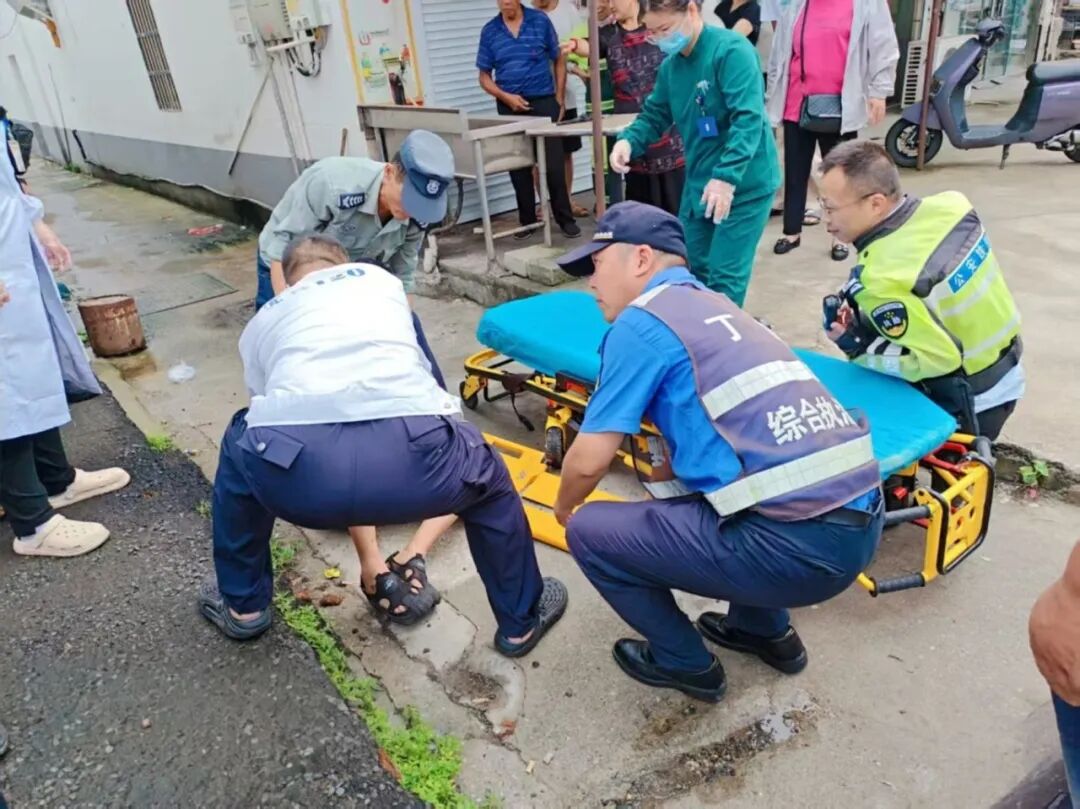 9月2日,官林中队环卫分队队员蔡梦杰、庄云潇、蒋忱志在巡查至官林镇北菜场时,发现一名老人倒地不起,其家人焦急万分。队员们随即停车上前,小心翼翼地将老人扶起,随后驱车火速将老人送往医院,为老人及时救治赢得了宝贵时间。