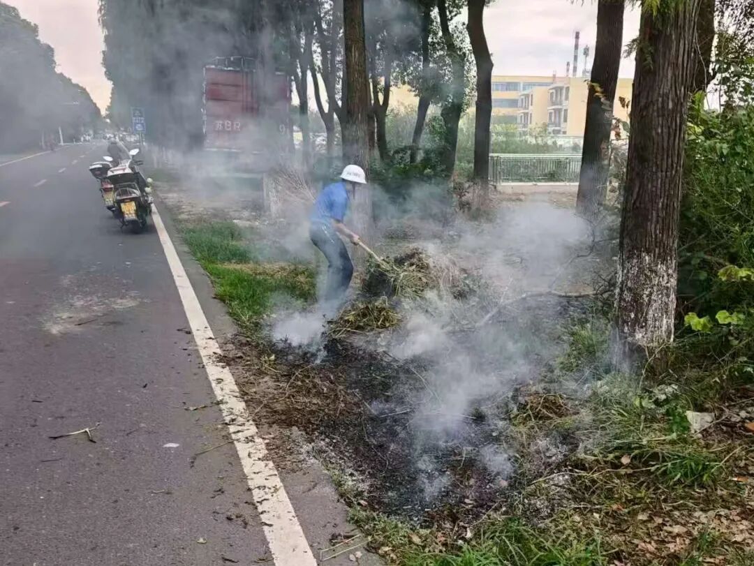9月23日,官林中队队员宗宏华、戴龙骏在前往凌霞幼儿园护学岗途中,发现路边有一处明火。面对突发情况,戴龙骏从附近大棚借来扫把,宗宏华则用扫把打散火堆,在逐一排查彻底消除潜在隐患,两人没有片刻耽搁,迅速赶往幼儿园执行护学岗任务。