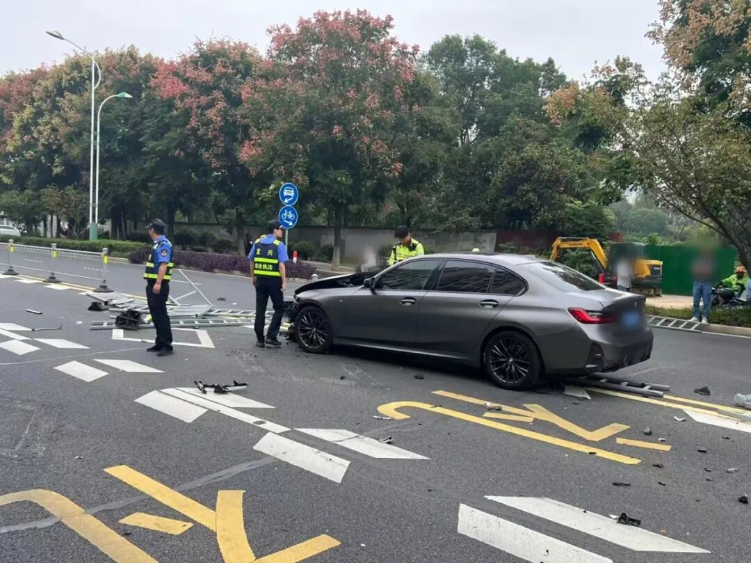 9月28日,环科园中队队员李韬、胡亦鹏、沈贺巡查至S342归径段时,突遇一起机动车爆胎并撞向隔离栏的紧急事故。几位队员迅速下车查看现场情况,帮助驾驶员摆放三角警示牌,协助报警并告知事故详细位置,引导驾驶员到路边安全区域等待,全程有条不紊。