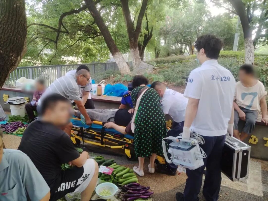 9月1日上午,水浮桥临时疏导点一名有心脏病史的老年市民突发疾病,城中中队青云班组水浮桥定岗队员周洪军迅速上前,扶住即将晕厥的老人,将其搀扶至座椅上,一边为其擦拭呕吐物,一边与家属持续呼喊老人,以防止老人陷入昏迷,并且第一时间协调周边摊主拨打120急救电话。待救护车抵达,周洪军协助将老人送医后才默默返回岗位。