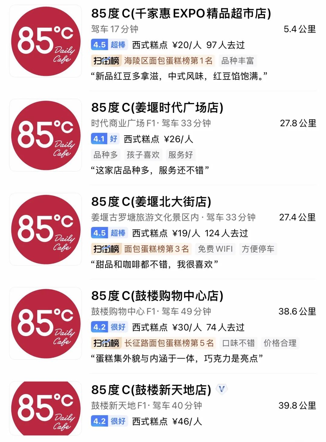 85度C在上海也有不少门店,记者在大众点评等平台搜索发现,上海目前有个别门店“暂停营业”。