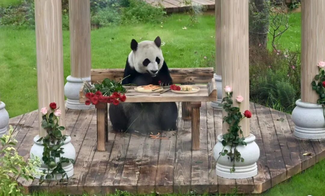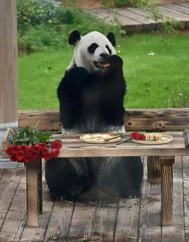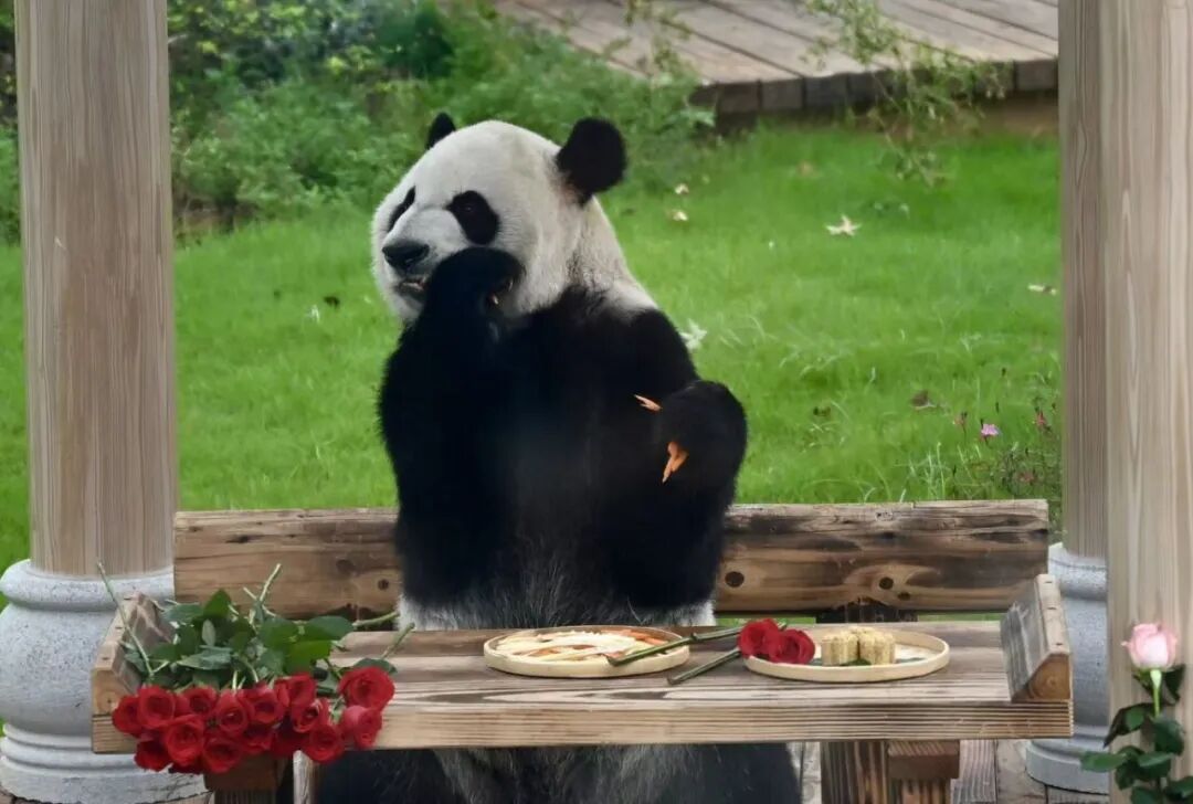 无锡动物园精心准备的生日宴让加悦悦胃口大开。
