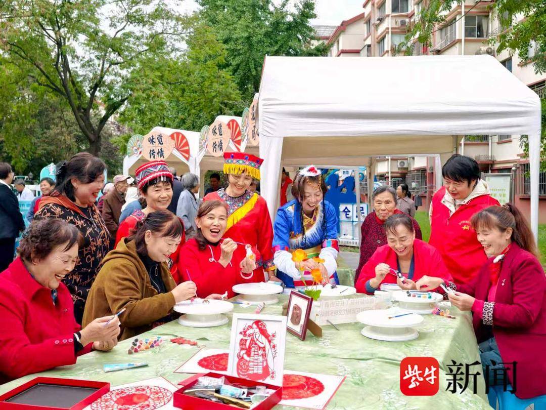 “同心工坊”环节成为促进民族交融的生动实践。在“泥韵同心”区,各民族居民一起给“民族娃娃”画上牡丹与艾德莱斯纹样的发饰,最终串成环绕“太湖风景”的“太湖儿女”群像;“纸艺连心”区,居民共同展示剪出的“民族团结树”,称“这树根是社区的老情谊,叶子是各家的新故事”;“味觉传情”区,志愿者为居民送上多种美食品尝,新疆酸奶配着无锡小笼被认为是“社区的团圆宴”。