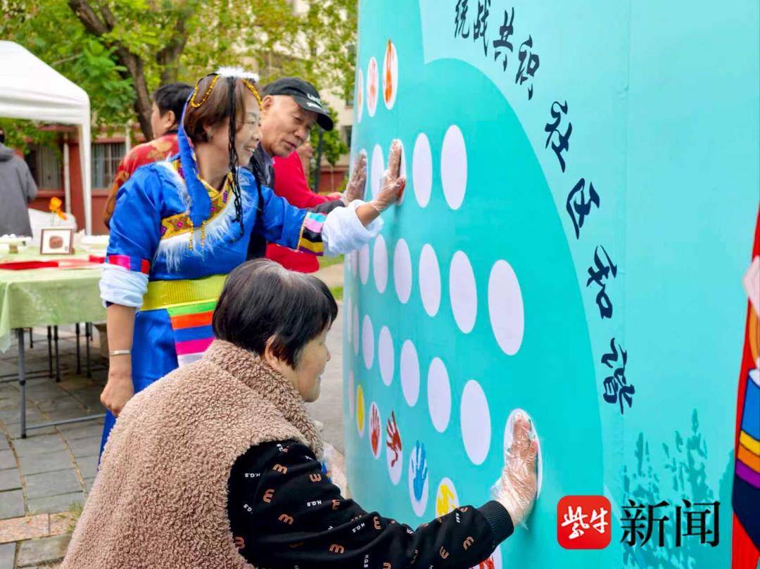活动尾声的“非遗同心手印墙”将氛围推向高潮。各族居民用8种颜色的天然颜料,共同按下36个手印,组成直径2米的巨型“爱心”。这幅色彩斑斓的“同心生态”画卷将长期悬挂在社区新时代文明实践站,成为民族团结的生动见证。