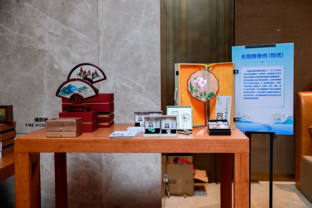 活动现场设置了非遗展区,让锡绣与湘绣“一柔一刚”同框,屺源窑与铜官窑“一雅一艳”对话,茶颜悦色与天下第二泉隔空“碰杯”……生动呈现了两地文化的互鉴共荣,吸引着嘉宾纷纷驻足。