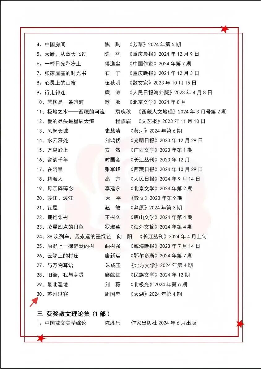 第十一届冰心散文奖(2023—2024年度)包括散文集(20部)、散文单篇(30篇)及散文理论集(1部),周国忠获得的是其中的散文单篇奖项,发表于无锡当地的文学类杂志刊物《太湖》2024年第4期。