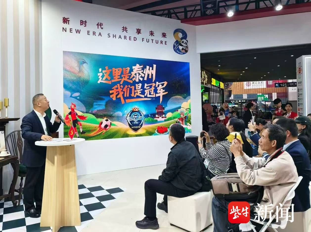 进博会期间,省政府驻上海办事处在党群服务站内精心布置了代表江苏十三座城市的球队形象立牌,成为现场一道亮丽风景,引来众多观众驻足合影。6日的活动中,泰州市率先登场,以其在“苏超”赛场上“一黑到底”的传奇夺冠历程为引,生动推介了“泰州泰美,泰想你来”的城市形象,并向在场客商发出邀请,实地体验“到泰州、泰周到”的贴心服务。